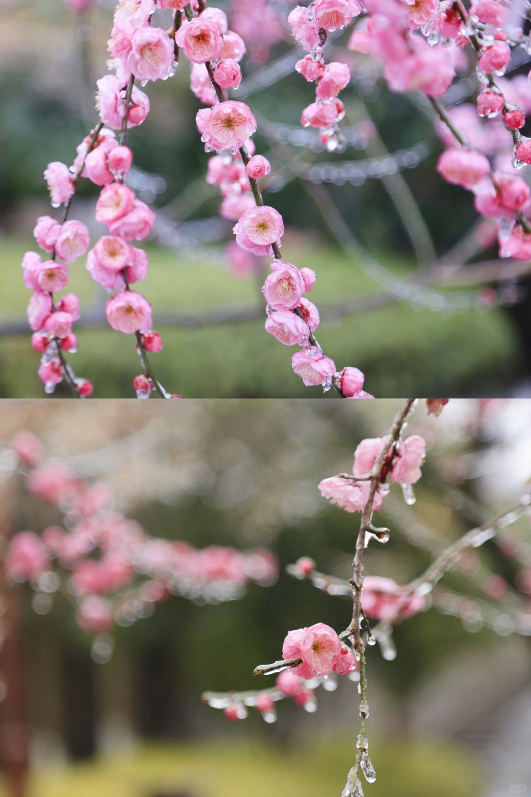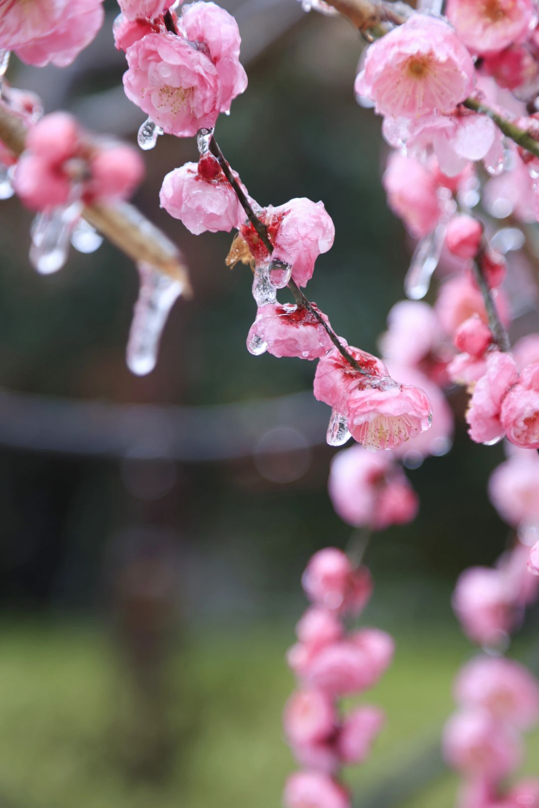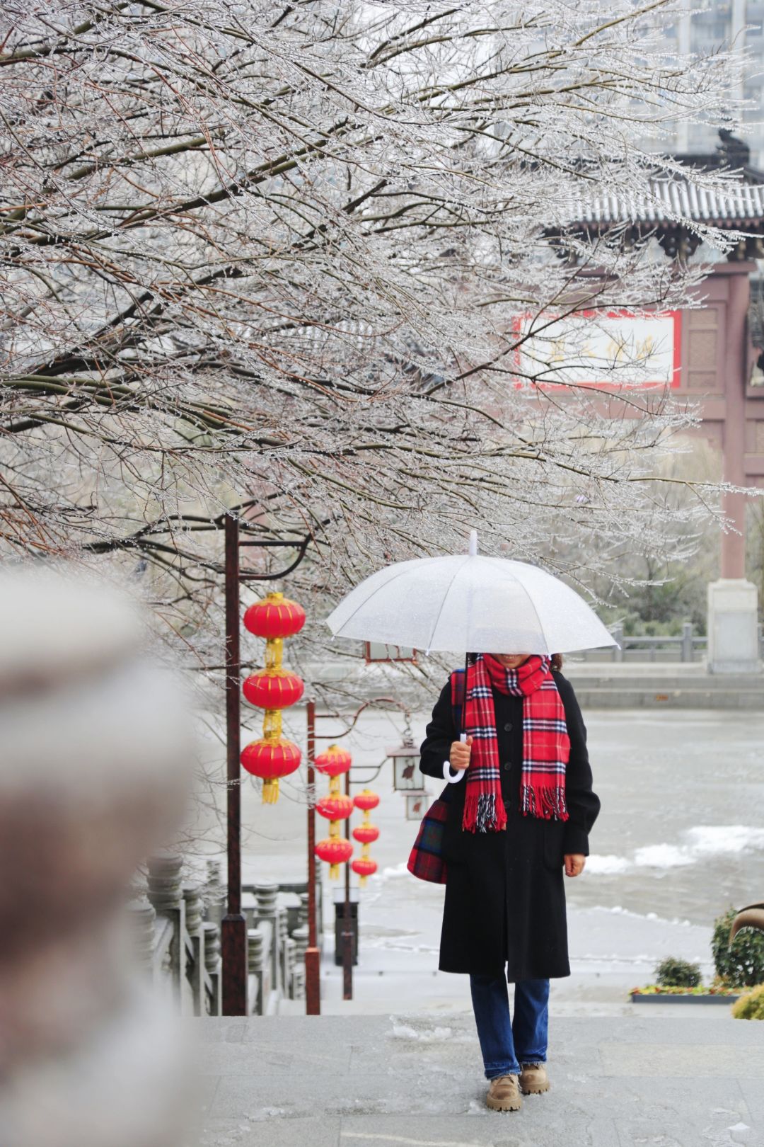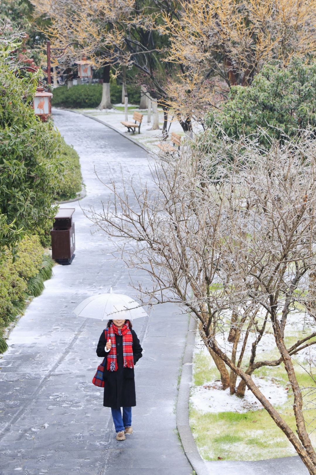 武汉冻雨,进入冰雪❄️童话世界|附攻略 宝子们,小年快乐。 这两天,武汉下起了冻雨,噼里啪啦,地面,树梢结成薄冰。当你走在林间,冰雪依据树木的形态结成长长的冰挂,多姿多样,将你带入童话世界。 📍游玩线路:黄鹤楼公园东门➡️中华优秀传统文化主题公园➡️首义公园➡️龙华寺 🚗停车:黄鹤楼公园东门停车场 每小时3元。 这条线路,不仅有梅花,小山,寺庙,更有叶剑英元帅题字的“辛亥革命武昌首义纪念碑”,首义志士们进攻的“炮台”,“湖北省图书馆”旧址等,串在一起,形成小众而又精华,文化历史结合一体的游玩路线。 1⃣黄鹤楼公园东门 不用进黄鹤楼,只要上台阶登顶,视野开阔。 2⃣中华优秀传统文化主题公园 免票 从黄鹤楼东门下来,就是中华优秀传统文化主题公园。穿行其中,梅花已经绽放,粉粉嫩嫩,结成冰花。 3⃣首义公园 免票 往蛇山上走,你会被眼前的景色惊呆,树梢上结的冰挂,将你带入童话世界。 4⃣龙华寺 免票 在首义公园的一角,有个小巧精致寺庙,门前领上免费三柱香,送上虔诚祝福。 👉游玩小提示: ☑️这条线路游玩时间大概2小时左右,但由于雨雪路滑,时间会延长。 ☑️上坡爬山时,要注意脚下路滑。特别还要留意路旁的树枝,随时有可能被冰雪压断。 ☑️天寒地冻,在注意保暖的同时,穿上一双可以防滑的鞋子很有必要哟。