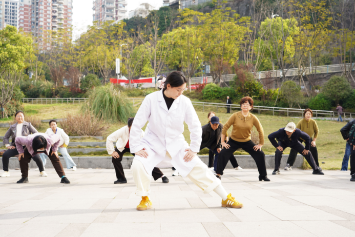 最受欢迎的是资深中医师带来的春日养生微讲堂。医师不仅讲解春养肝的饮食要点,还针对江边湿气重的环境,现场示范“江风疏肝呼吸法”。随着讲座进行,越来越多散步、晨练的市民被吸引驻足,从旁听到提问,最后自发加入练习。