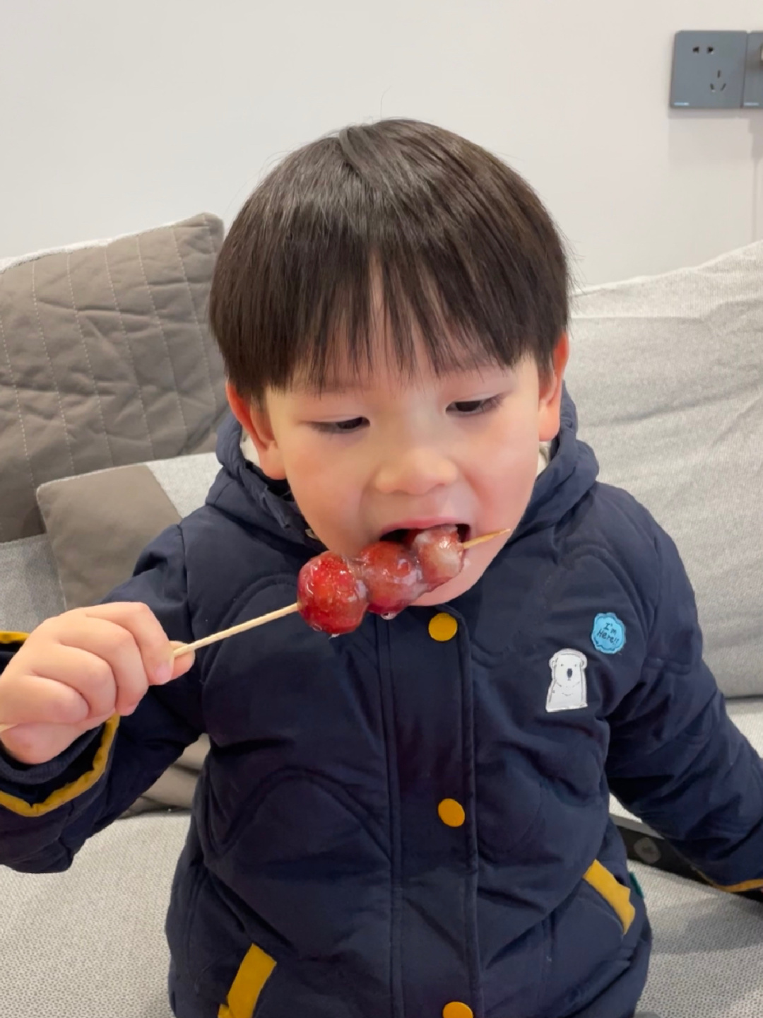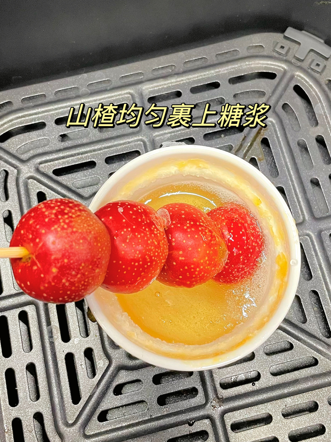 有空气炸锅的都去做,年味就是这么信手拈来 腊八过了就是年,小时候的年味是一串冰糖葫芦,一套新衣裳,一双新鞋和一堆好吃的,长大了年味越来越淡。今儿是腊八,儿时父母给的年味记忆今天让我给儿子也安排安排,让他也感受下我儿时的简单幸福。 材料:山楂、零卡糖、清水 做法:山楂洗净串成串,20克零卡糖加15克清水,搅拌至糖融化放入空气炸锅200度20分钟,糖水冒大泡时将串好的山楂裹上糖浆,待糖浆干透,儿时记忆里的年味冰糖葫芦就做好了。 自己做的冰糖葫芦干净又卫生,用空气炸锅省去了熬糖浆的复杂过程,酸酸甜甜非常好吃,连我家孩子对此赞不绝口!