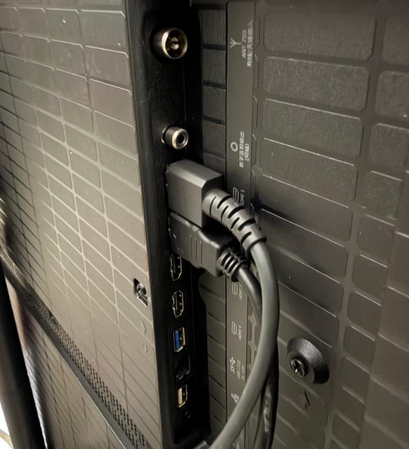 ▲默认底座是金属材质,稳固性极强,不用担心百寸大屏倾倒,而且底座间距适中,不会遮挡电视柜的储物空间。接口布局在机身侧面,插拔设备(比如PS5、Switch)很方便,不用弯腰找接口。