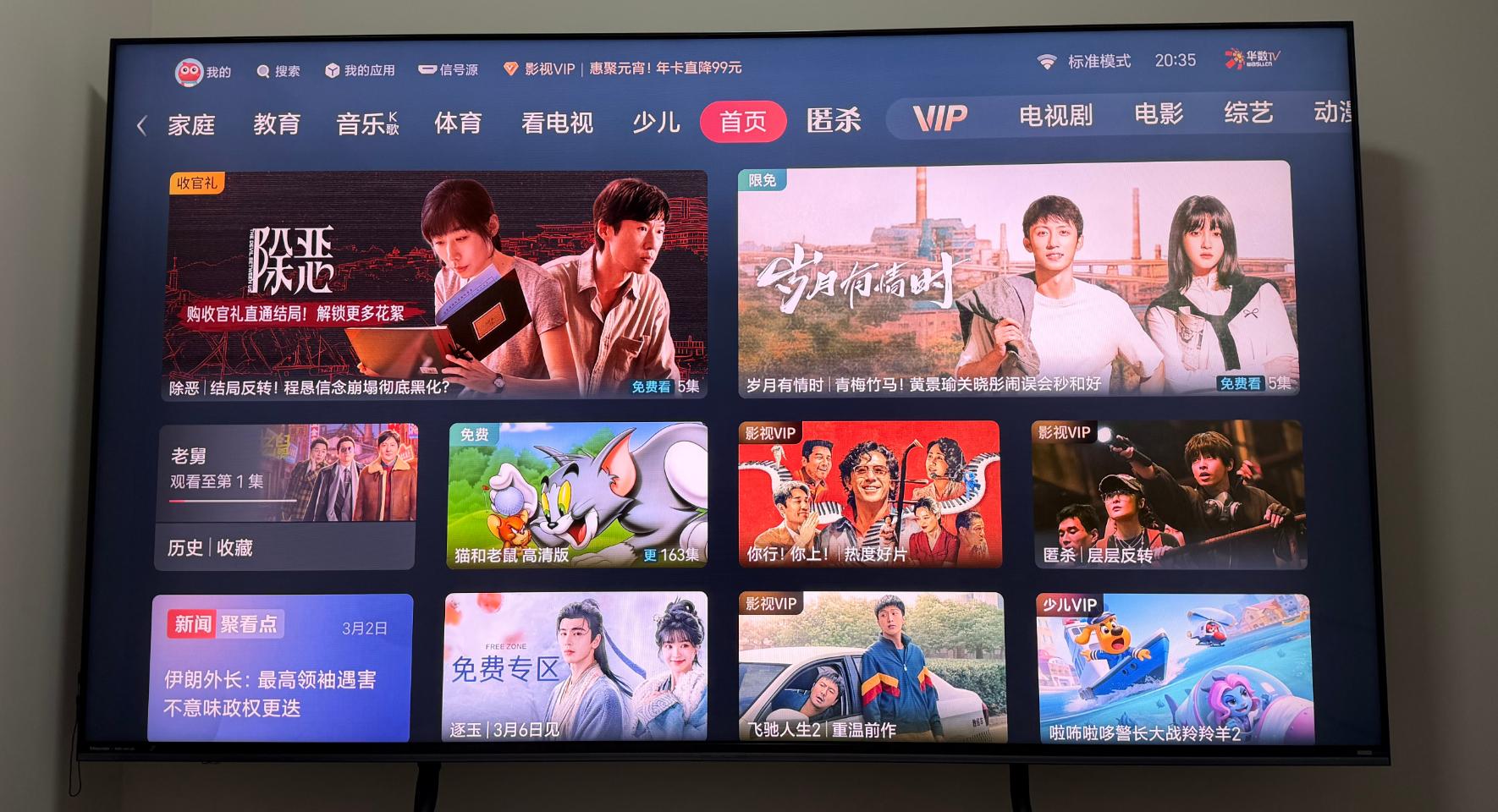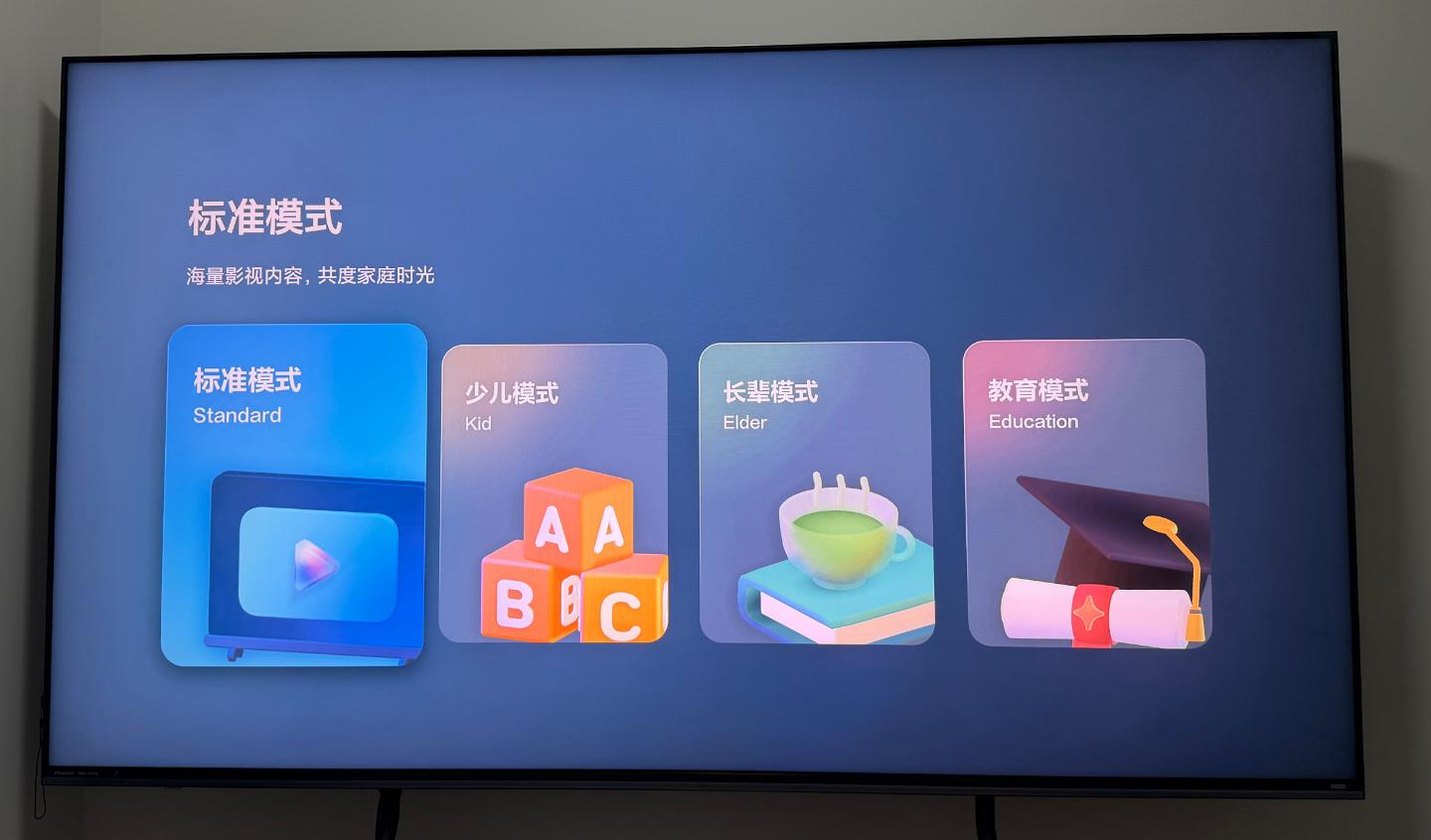 ▲海信 E8S 的系统体验贴心又实用。它搭载聚合界面,内置标准、少儿、长辈、教育四种模式,可按需一键切换,标准模式适合日常使用,长辈模式字体更大操作更简单,少儿模式内容更健康安全,全家不同人群都能找到合适的使用界面。