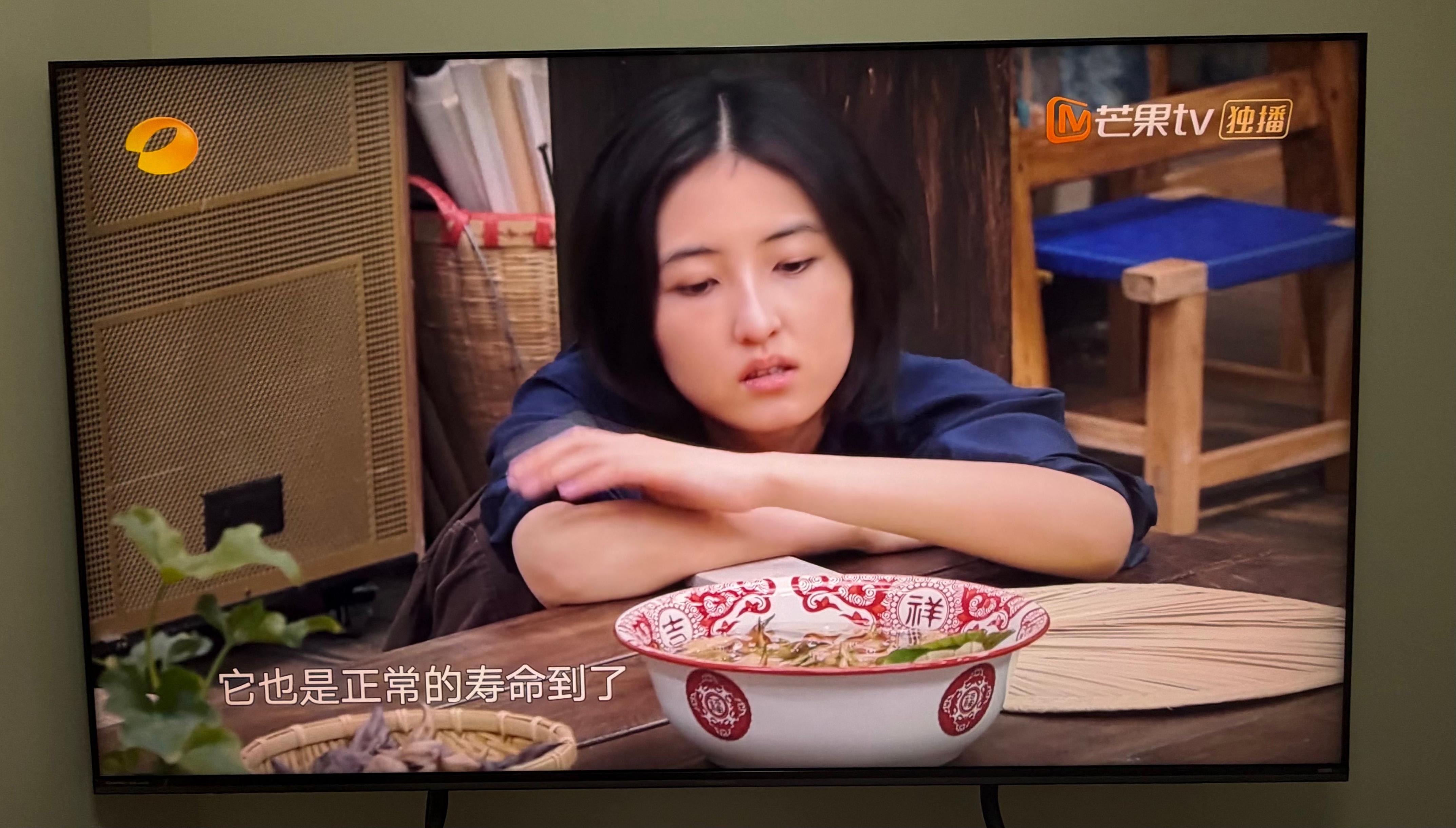 海信E8S的人像肤色还原很精准,不偏黄、不偏粉,皮肤纹理清晰,画面很通透,有“电影感”;传统量子点Mini LED机型,肤色容易偏黄,画面发闷,缺乏通透感,看起来很“模糊”,没有质感。而且选用AI画质模式之后,会自动补帧到60帧,高帧率对于综艺节目还是很适合的。观感流畅度大大提升。