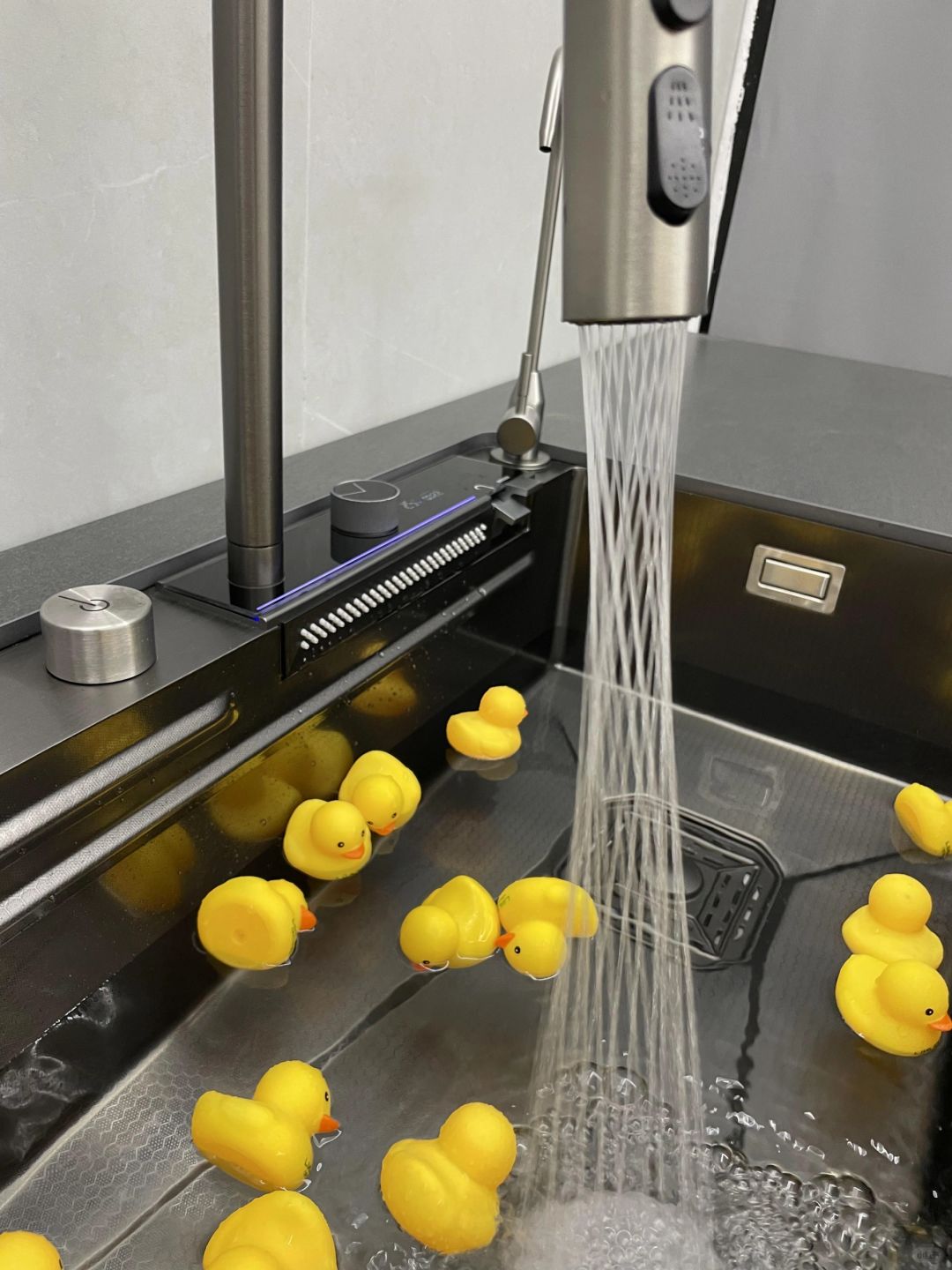 这个水槽太好用了,想找不洗碗的理由都 入手这款水槽之前,我家的旧水槽是双槽那种,容量少还容易溅一身水,老爹一直在老妈面前找理由不洗碗😂 现在入手的是NDND他家的氛围灯水槽,水槽到了好几天,今天终于让师傅上门安装啦!! 水槽是304不锈钢材质的,光看着就觉得质感不错✨而且表面是蜂窝纳米涂层的还耐磨抗油污,我入的尺寸是750mm*450mm,有230mm深,容量大可以放置锅碗瓢盆,洗碗洗东西都不会被水溅到👍 我好喜欢这个抽拉式水龙头🚰,多种出水模式很方便实用,而且材质是精铜的,在南方潮湿的天气和季节,也不怕生锈,可抽拉清洗槽体的边边角角真是意想不到的惊喜!广州塔出水好有意思,连我这个不喜欢洗碗,都忍不住想洗,算了,还是老爹洗好哈哈哈哈😘 配件也是很齐全, 里面就有大单槽+抽拉水龙头+洗菜盆+沥水篮+切菜板+洗杯器+净水器+角阀~这些都另外去买,性价比真的好高呀,简直是太牛了‼ 今天给大家整理了几点选水槽的要点 买大单槽:大单槽,锅碗瓢盆都能洗,且深度大于21cm,水不容易溅出来 买304不锈钢:不会生锈,还耐高温,耐腐蚀,耐刮擦 买圆角内角:水槽空间利用率更高,清洗也简单 买底部带防冷凝涂层和消音垫的:避免橱柜受潮发霉,龙头落水更轻音