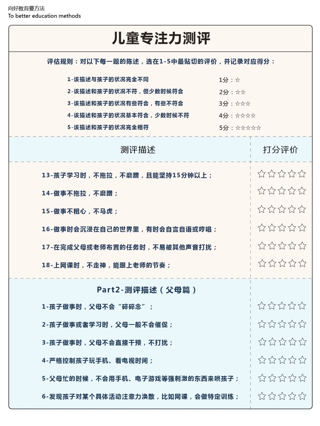 父母们对照下,专注力是很稀缺的资源,尤其在我们这个时代,注意力太容易被分散了,对孩子来说,如果小时候就养成了这样的习惯,长大后更难克服了。因为小时候还有父母强制,长大后,没人督促,靠自律、自觉就很难……