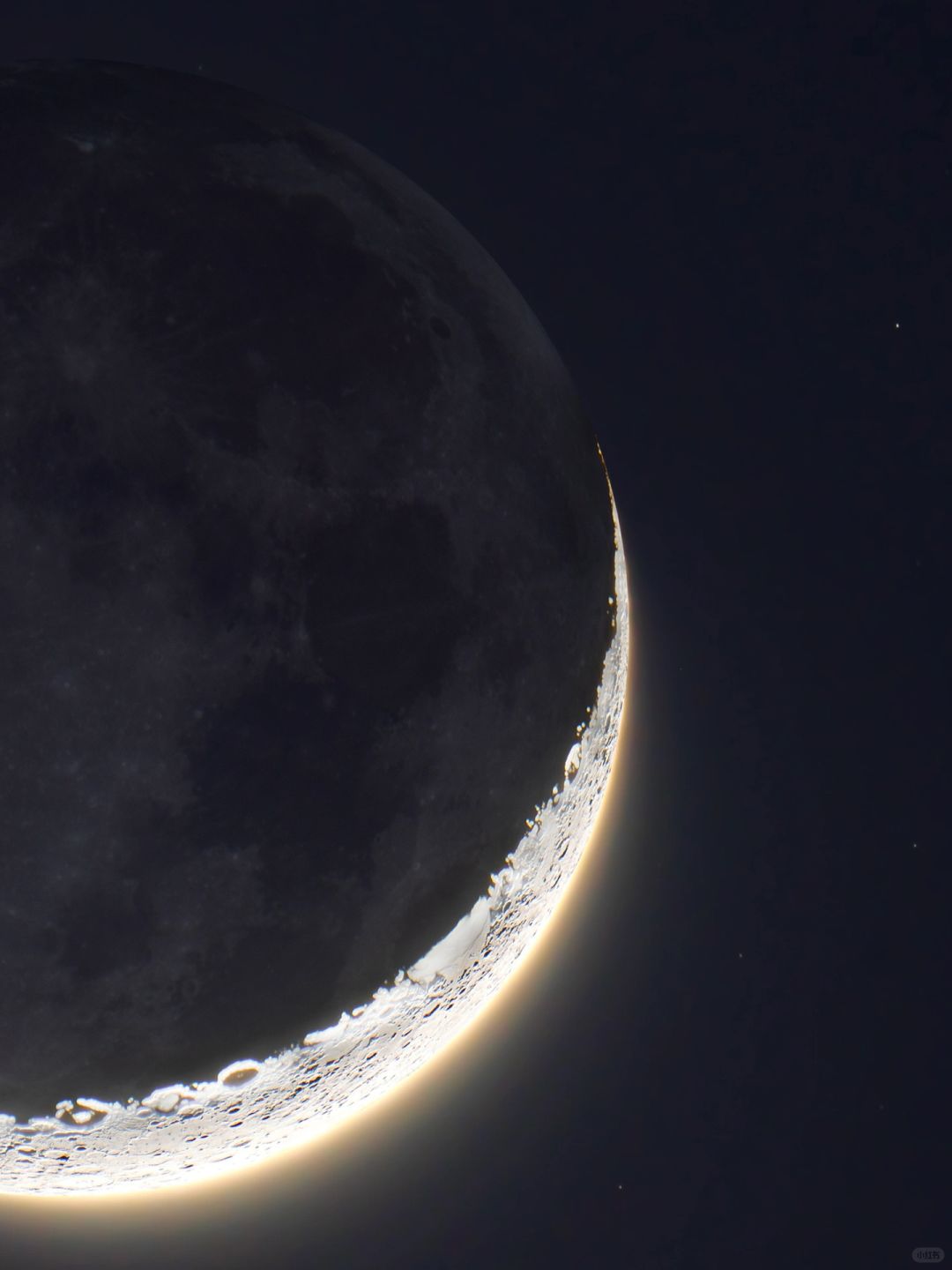 补充:我第一次拍弯月,经验不足,参数设置错误,错过最佳拍摄仰角有效张数只有90多,再加上光比过大,细节没了,之后再多尝试,拍到满意为止。