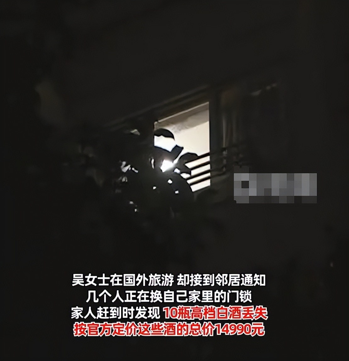 事发当天,吴女士正在国外旅游。正在游山玩水的时候突然接到了邻居打来的电话。称有人正在更换吴女士家的门锁,这些人之前都没有见过。吴女士联系了自己的家人,当家人赶到的时候发现摆在柜台的几瓶价值14990元的白酒被人盗走了。