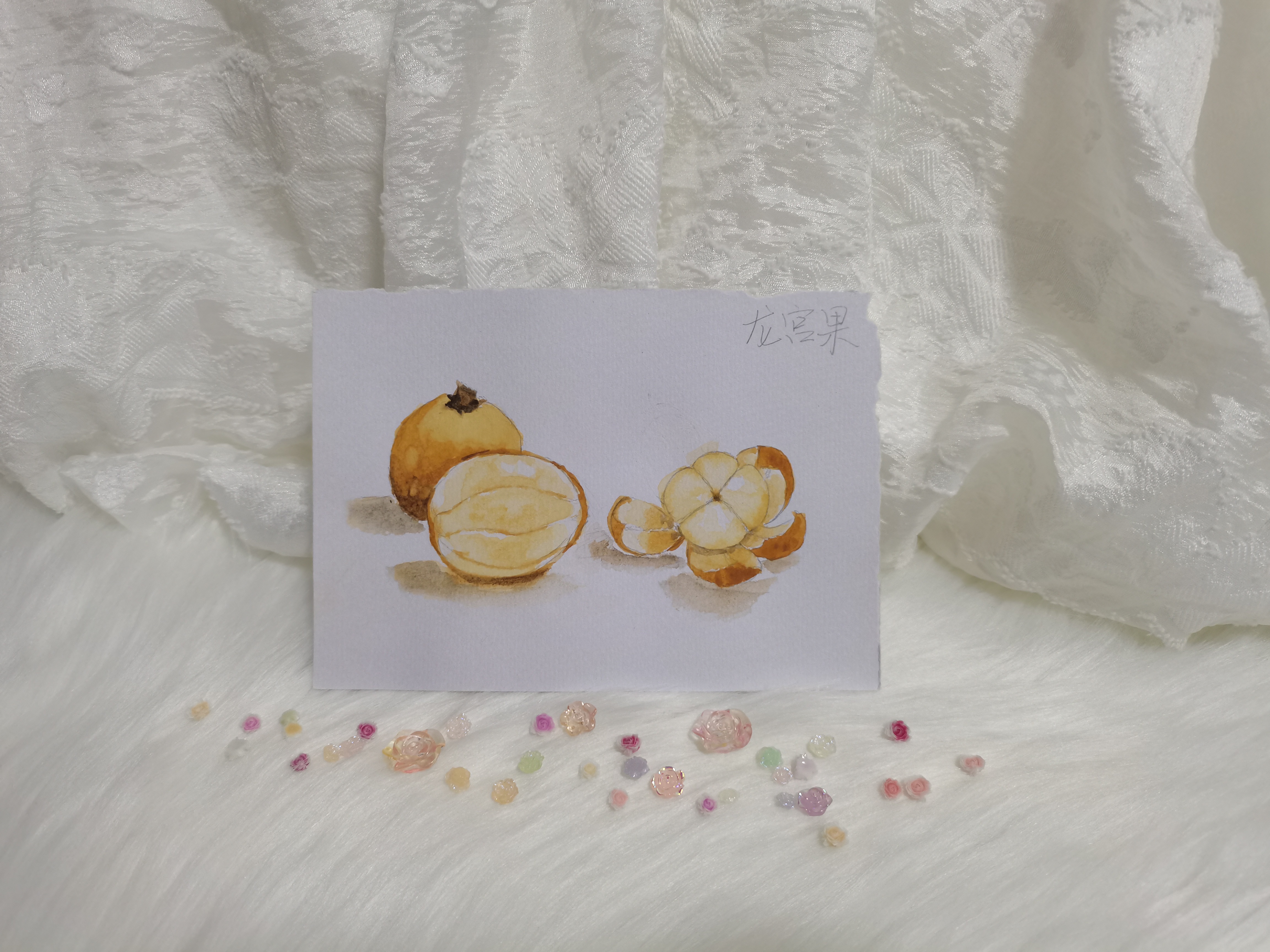 想象着可口多汁的龙宫果,把果肉画得清透,像透亮的、被精心打磨过的玉。