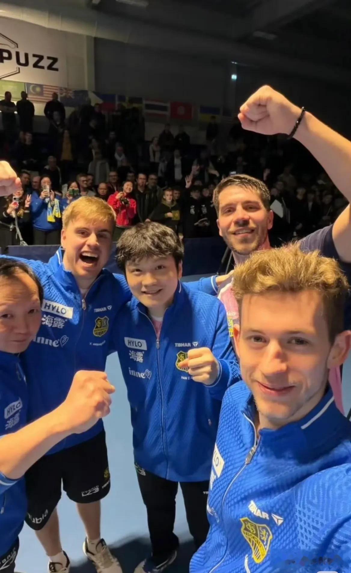 当弗朗西斯卡拿下第三盘比赛,萨尔布吕肯俱乐部也就大比分3:0赢了!于是小弗队长和樊振东一起庆祝“siu ”!