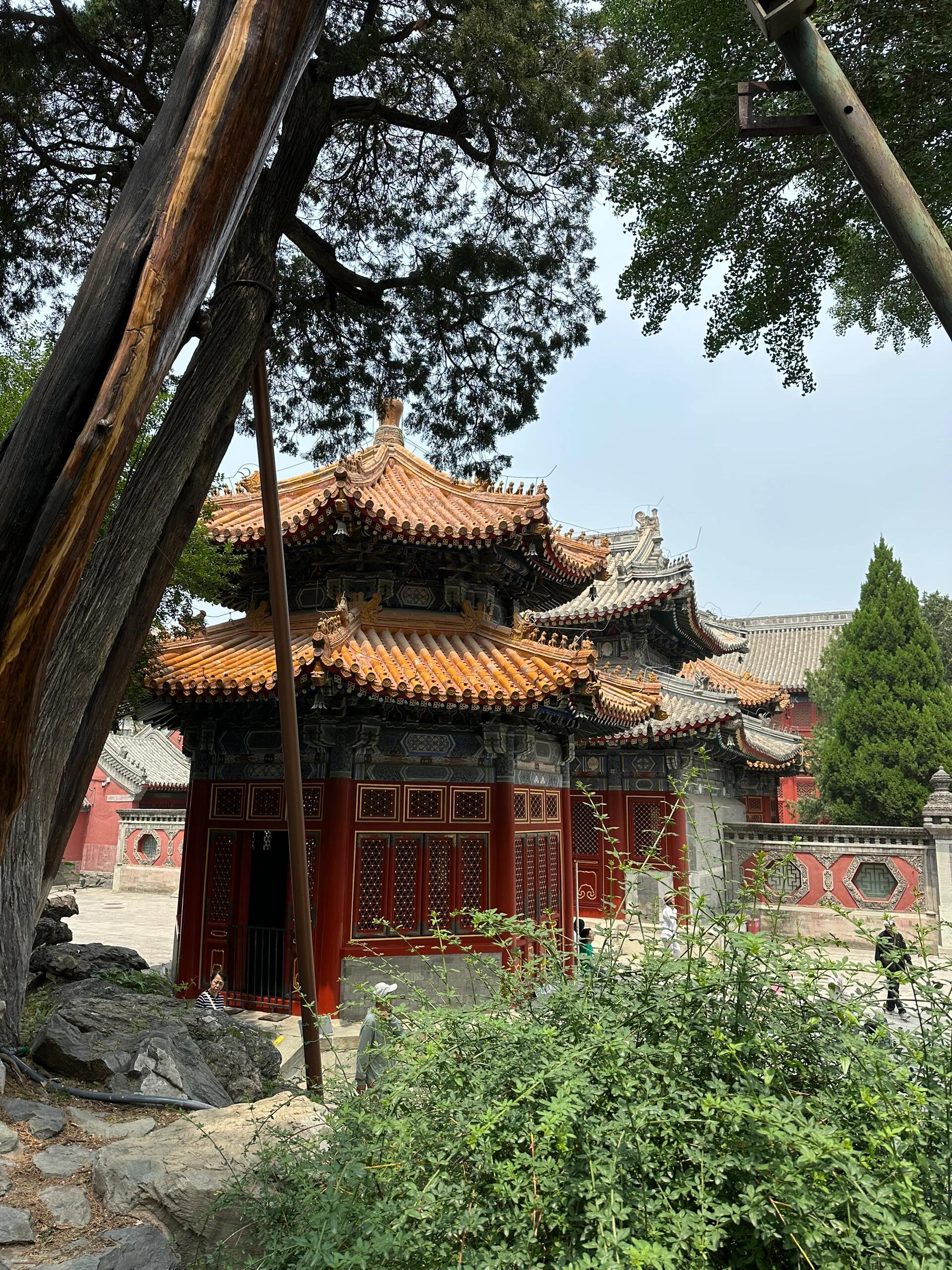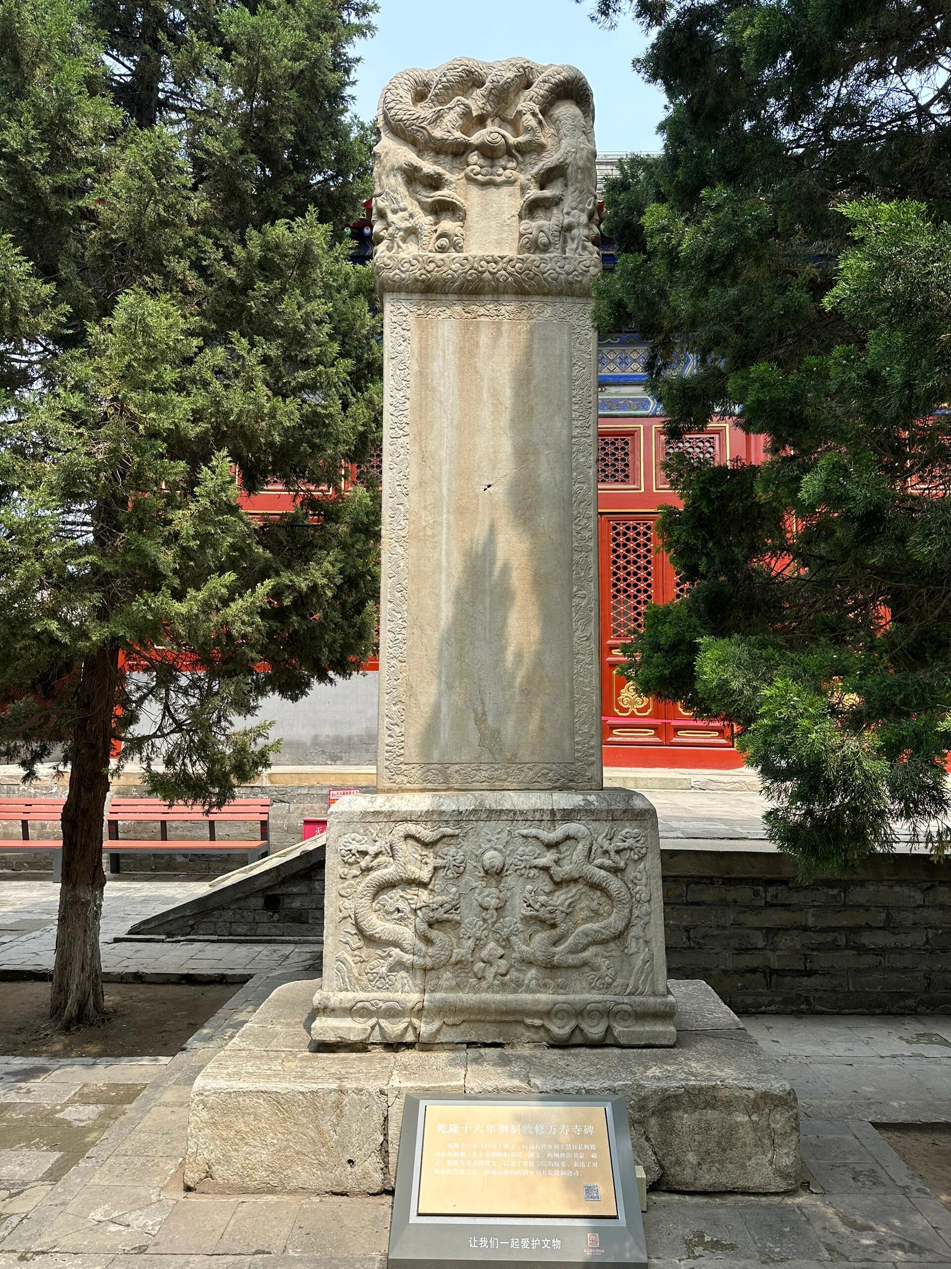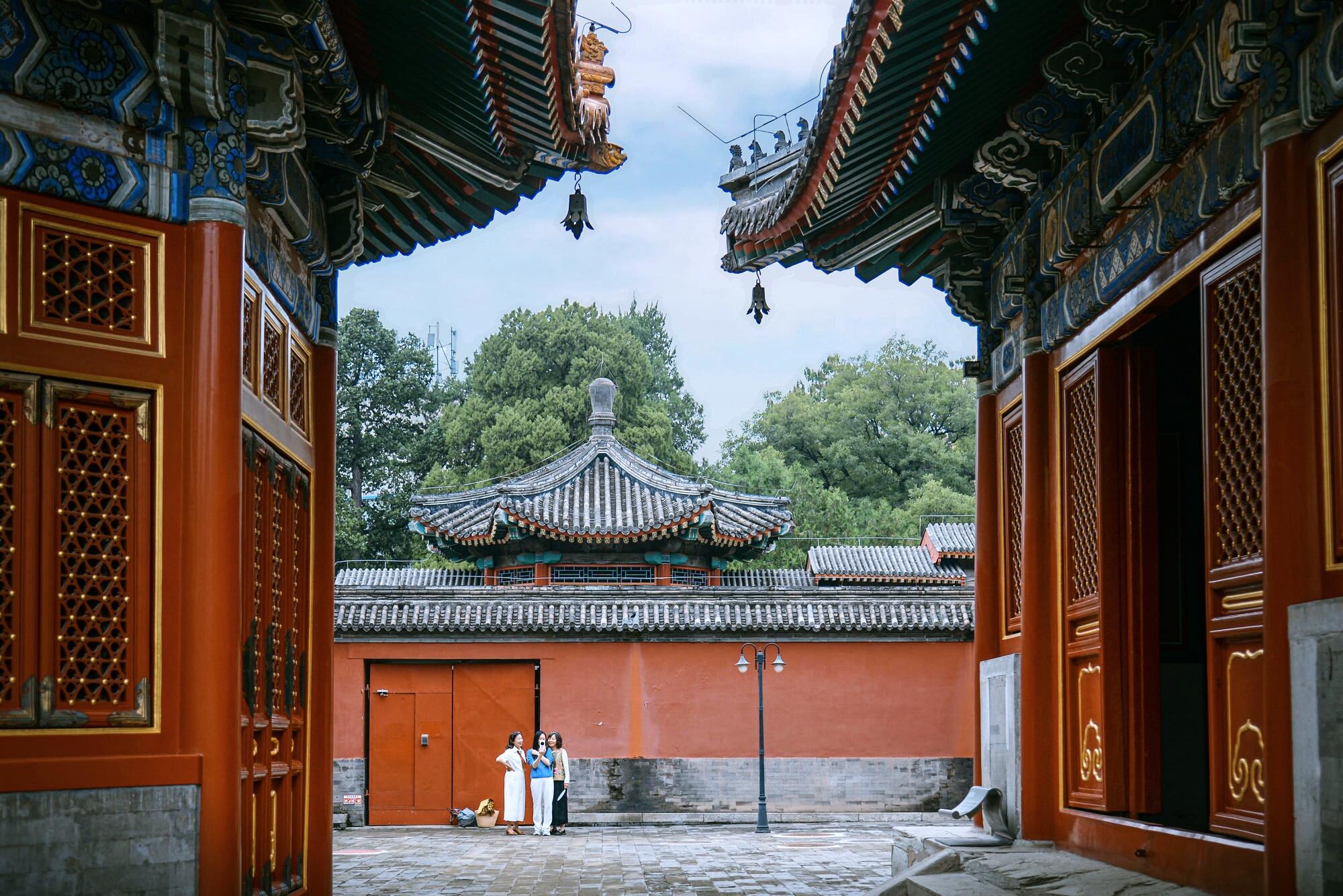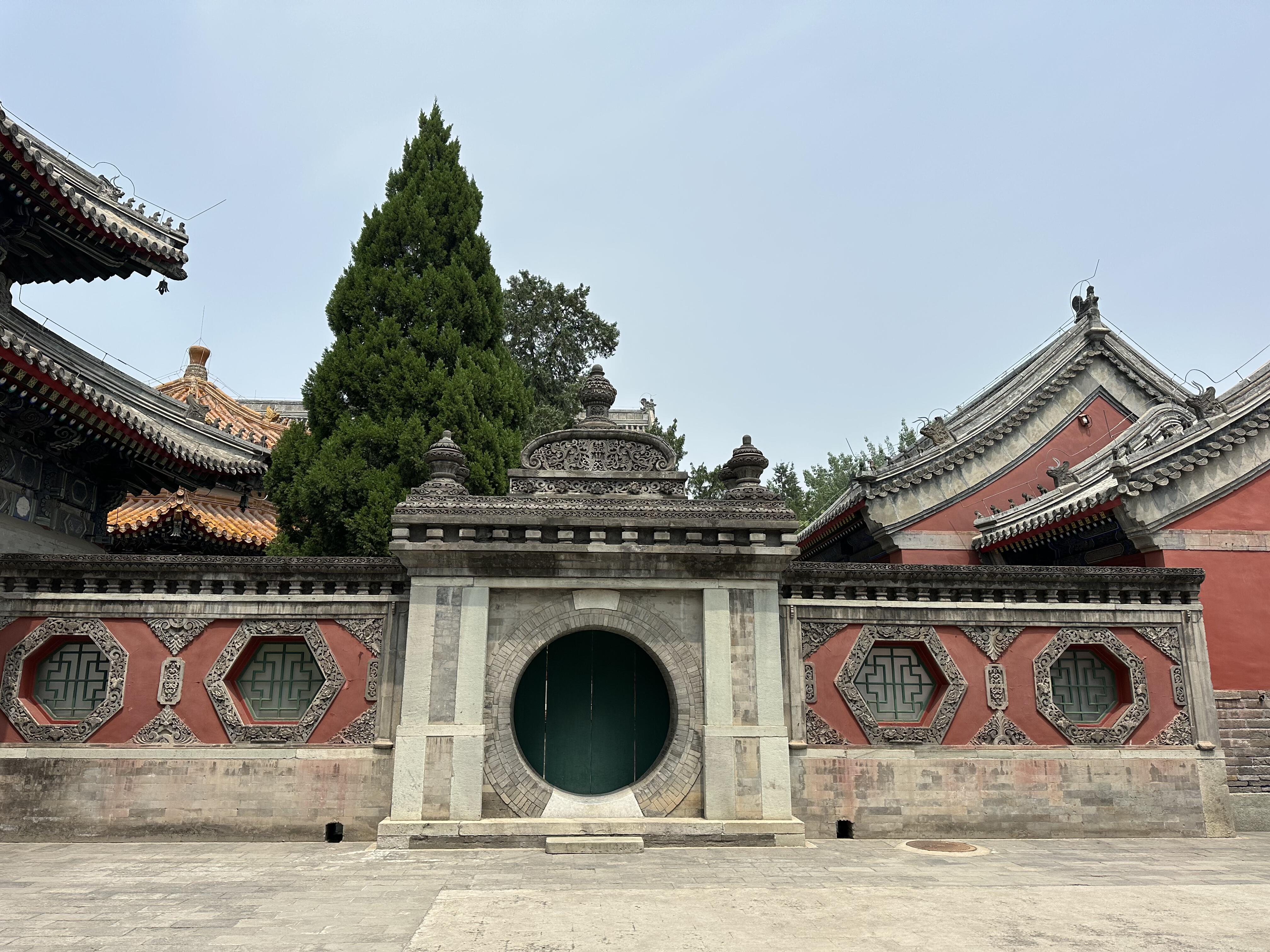 大雄宝殿是中路建筑群的核心,飞檐斗拱间尽显皇家建筑的雄浑大气。殿内供奉的佛像庄严肃穆,梁柱上的彩绘虽历经岁月侵蚀,仍能窥见当年的精美。继续向北,万寿阁高耸入云,作为整座寺庙的制高点,这里曾是皇家举行重大仪式的场所。阁楼的木质结构保存完好,雕花窗棂上的图案繁复细腻,展现出古代工匠的精湛技艺。