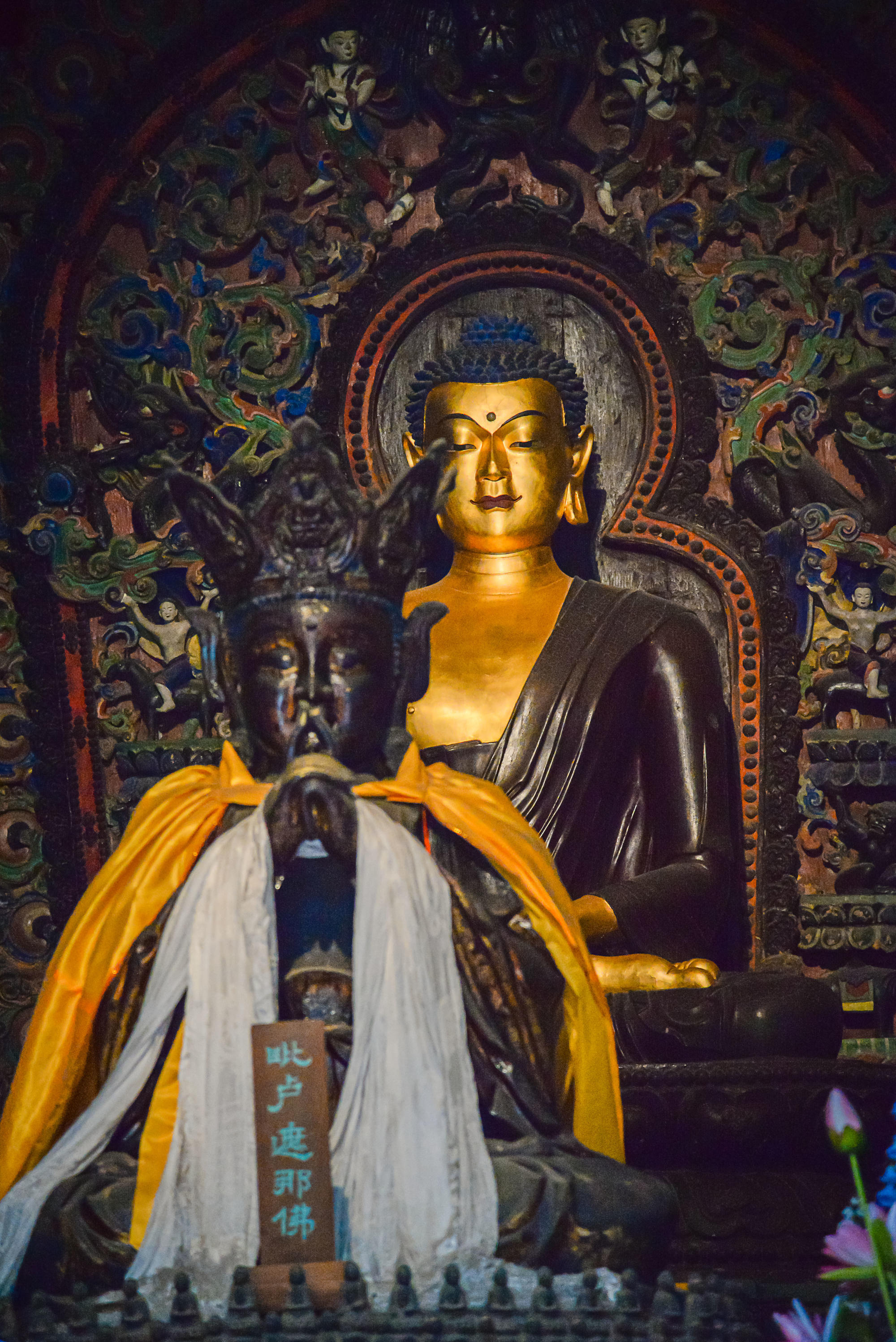大禅堂与观音殿紧邻,前者是僧人修行讲经的地方,后者则供奉着慈悲的观音菩萨。无量寿佛殿与万佛楼位于中路最北端,殿内佛像林立,佛香袅袅,营造出静谧庄严的宗教氛围。漫步其中,脚下的青砖已被岁月磨得光滑,屋檐下的风铃在微风中轻轻摇晃,仿佛在诉说着过往的故事。