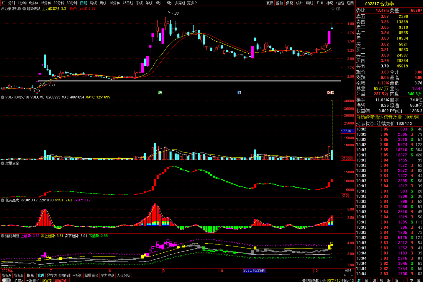 技术分析:合力泰昨日大阳线上涨9.88%,股价向上波动明显成交金额较昨日增加175.84%。日线走出光头阳线形态,短期均线组合多头排列,KDJ指标呈多头排列且连续多日处于上行趋势。