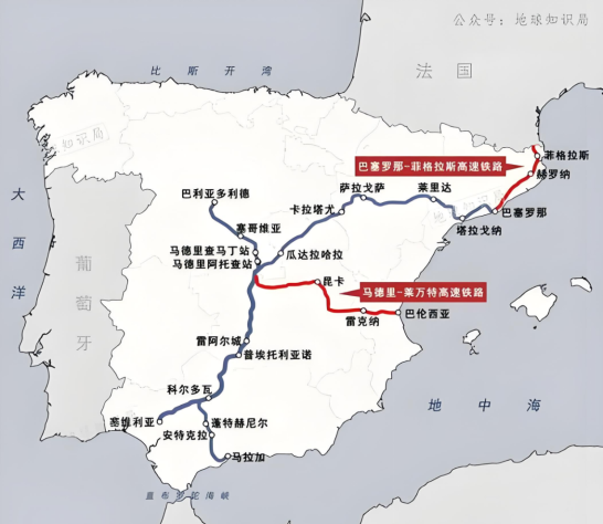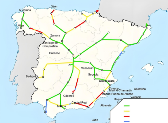 更关键的是轨距情况,当下西班牙高铁采用的是国际标准轨距1435毫米,而19世纪修筑的旧线路大多是伊比利亚宽轨(1668毫米)。这种不兼容的情况,不仅让换乘成本变高,还在物理层面把区域隔阂给固定住。直到1992年,西班牙第一条高铁马德里到塞维利亚那条线路才首次采用标准轨,把两地旅行时间从6个小时缩短到2小时45分钟,这难道仅仅是提速吗?