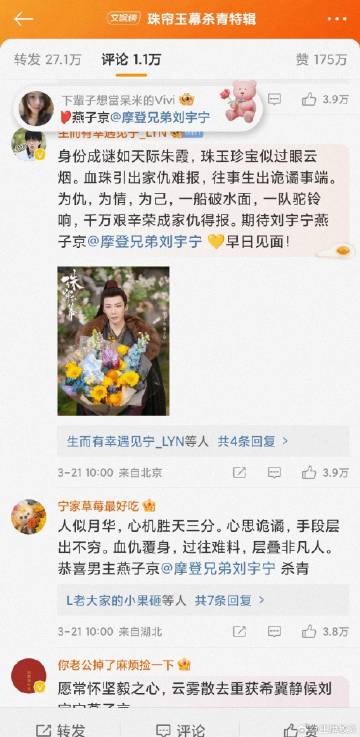 珠帘玉幕官博杀青特辑,前排都是刘宇宁粉丝啊!太给力了