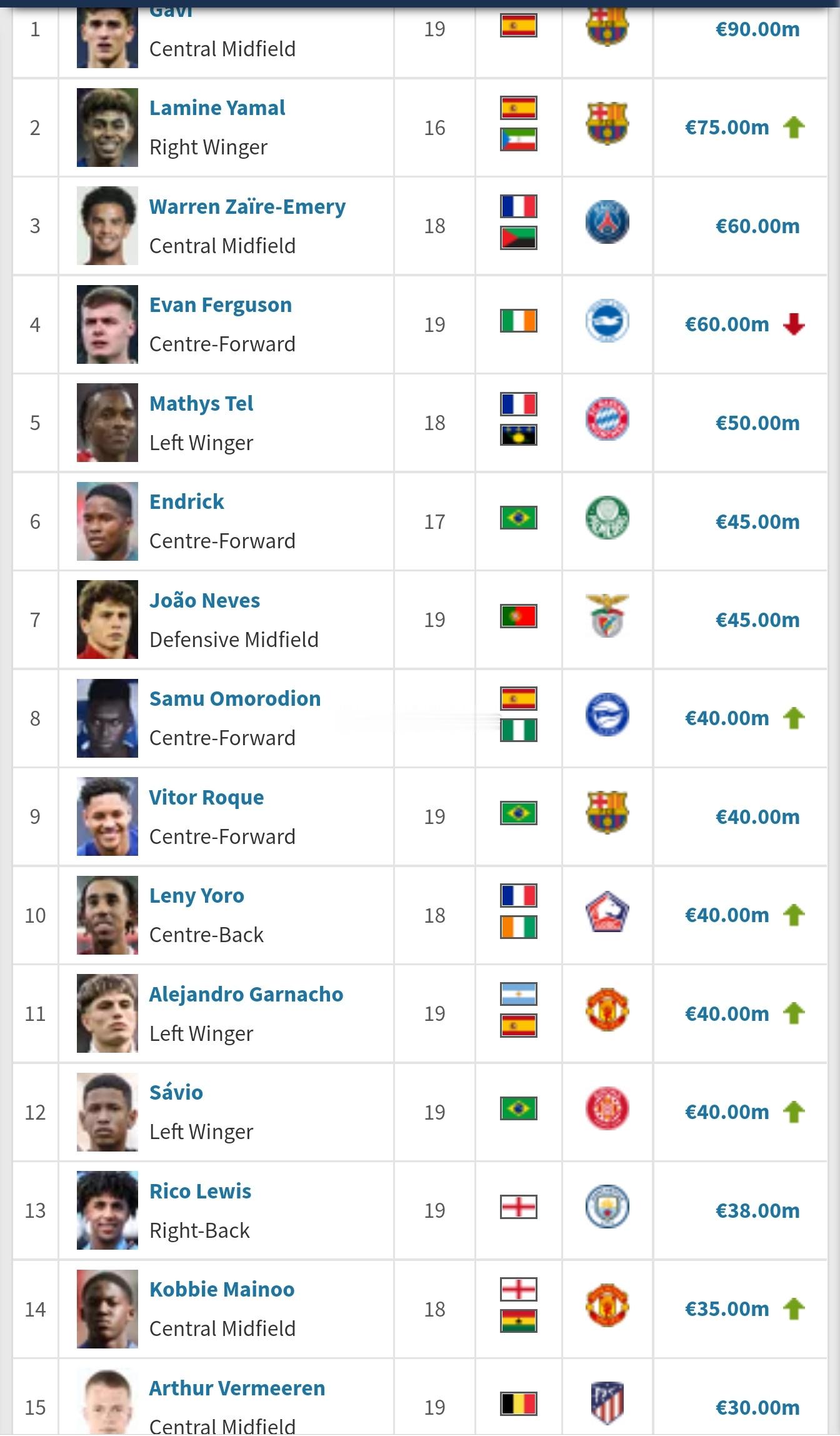 德转球员身价更新,马竞队内没有人上涨,只有外租的奥莫罗迪翁上涨两千万到4000万