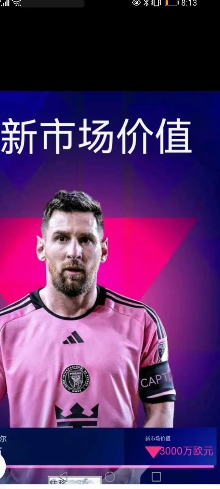 梅西遭遇断腿之痛,足球界巨星前途未卜,身价从3500跌至3000万欧元。下跌500万欧元,但仍然是美职联球员中最高的。