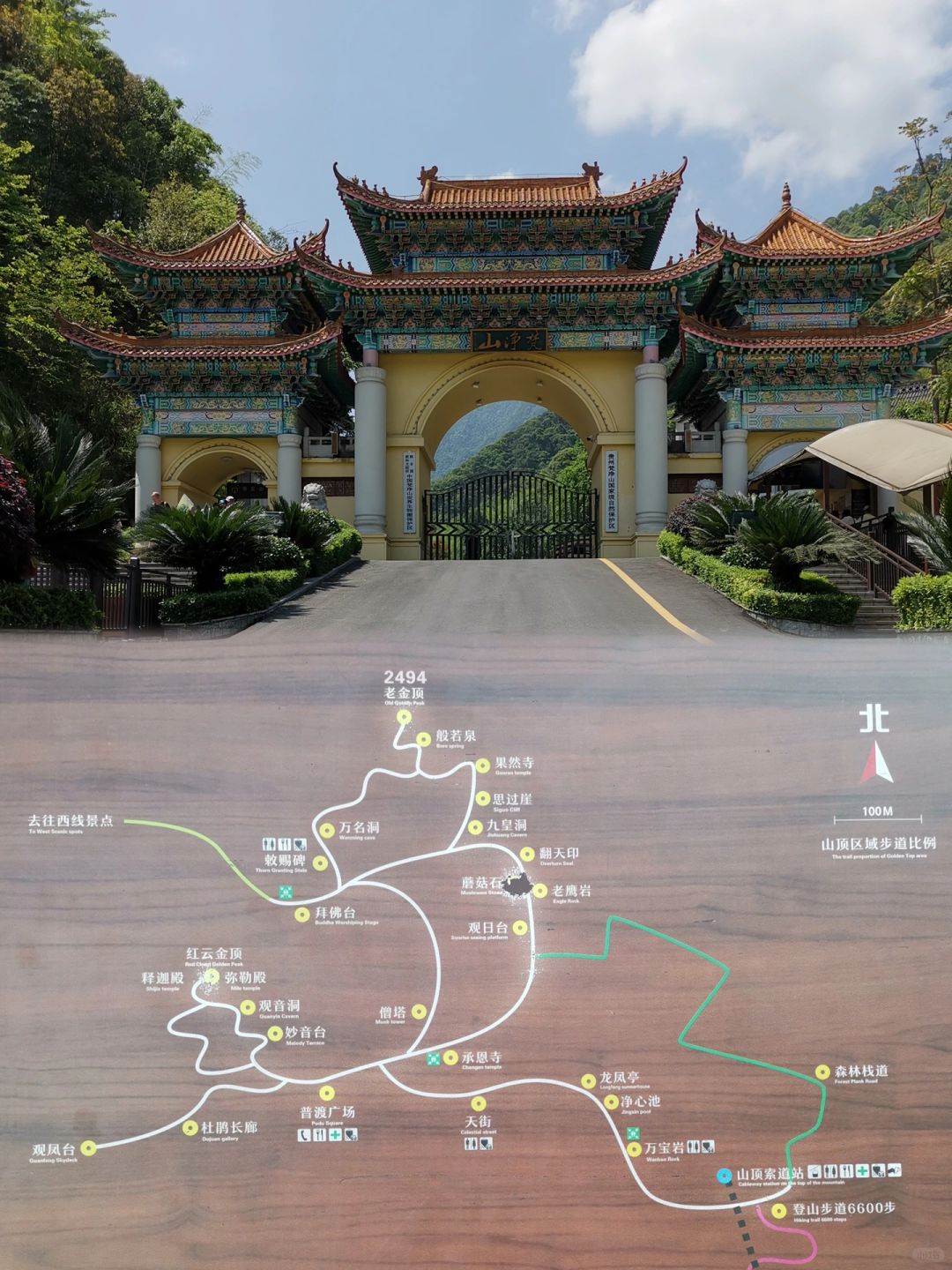 梵净山有两个门,东门和西门,两个门距离很远,东门是主要入口,有缆车索道,西门没有,全靠徒步。喜欢爬山、体力好的朋友可尝试西门徒步上山,人少风景更清幽,玩得更深入,但是要爬五个小时