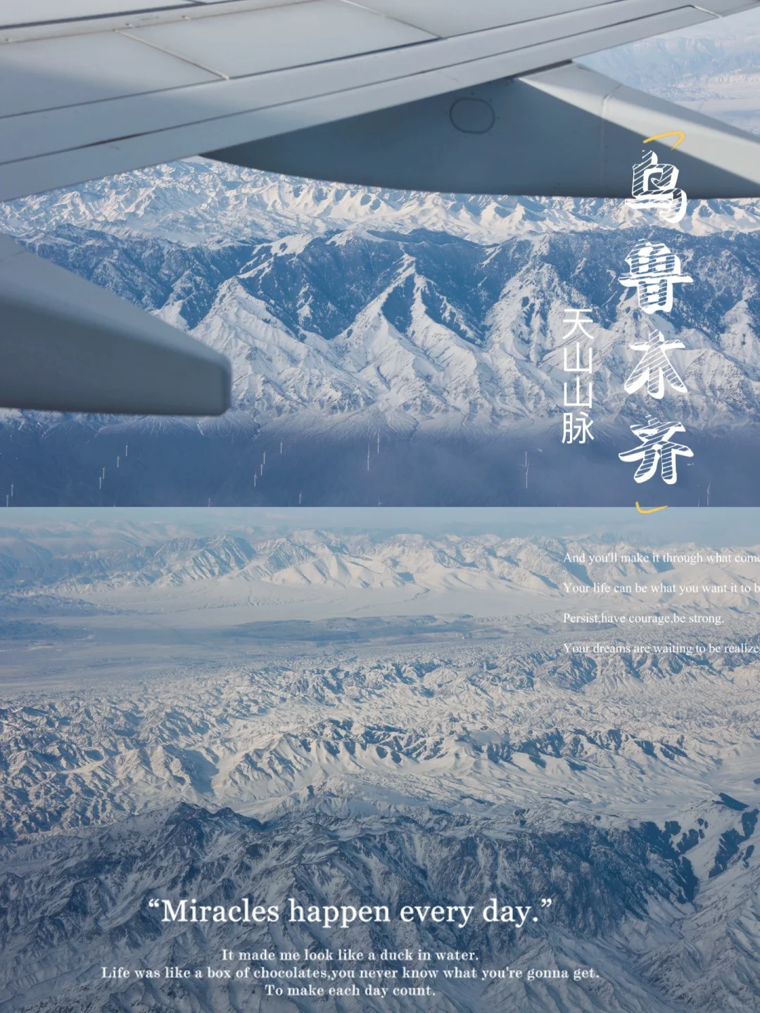 选择坐在窗口就能拍到机舱外的风景,时而是崇山峻岭,时而是霞光满天,时而是星罗棋布,机舱外的景色是旅行的意外惊喜。