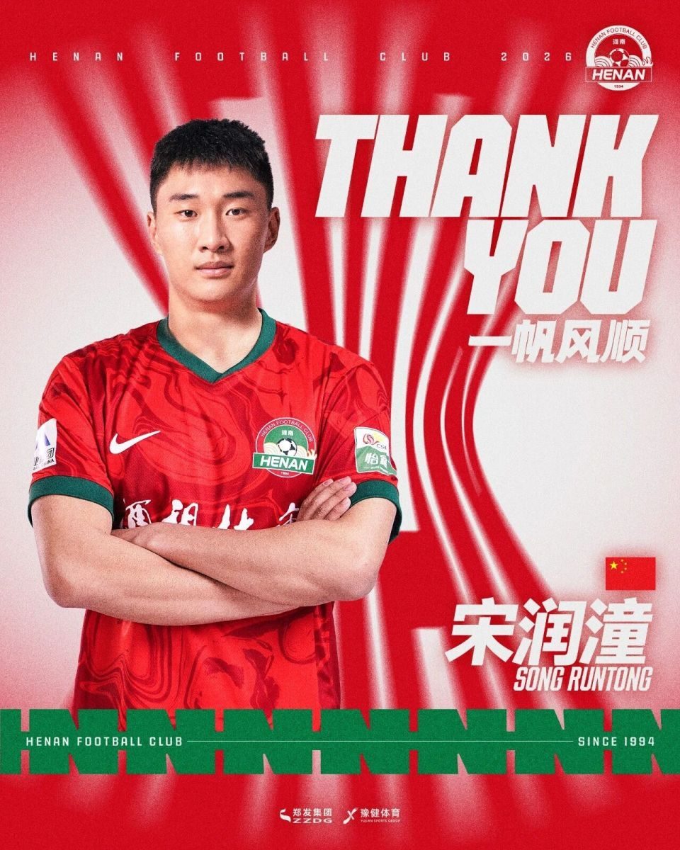 卢永涛,2025赛季中期租借加盟河南,共代表一线队出场12次,打进2球。