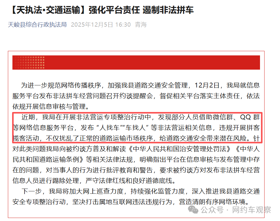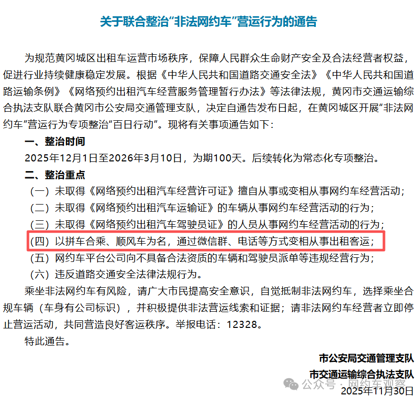 近期,多地开展非法网约车专项整治行动,都将“以拼车合乘、顺风车为名,通过微信群、电话、手机APP等方式变相从事非法营运活动”作为重点整治对象。