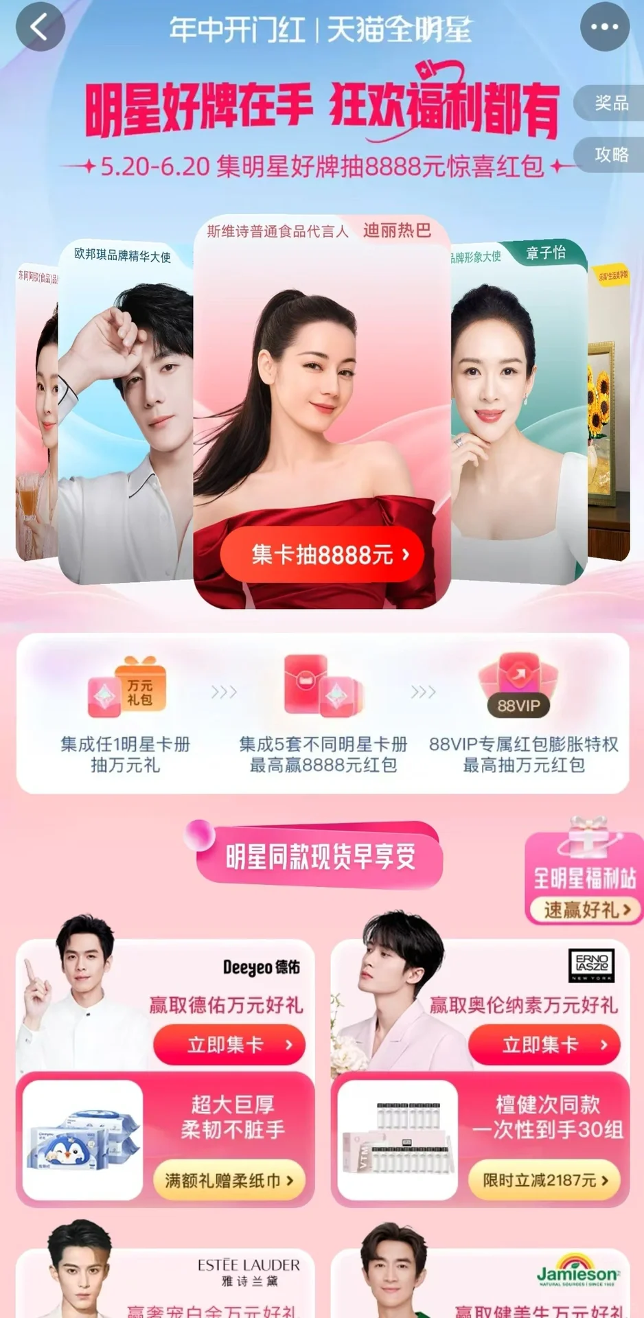 今天一下午一口气看了好几集,一看时间都快八点了,差点就错过集迪丽热巴的万能牌的时间了!还好赶上了,这次的天🐱全明星集好牌活动好多明星参加呀,还有我喜欢的热巴,万能牌拿到我就集全了!而且集明星的好牌,齐了还有可能拿到品牌的万元礼🎁和8⃣8⃣8⃣8⃣大🧧。看到好几个朋友已经中😁奖了,我要抓紧啦