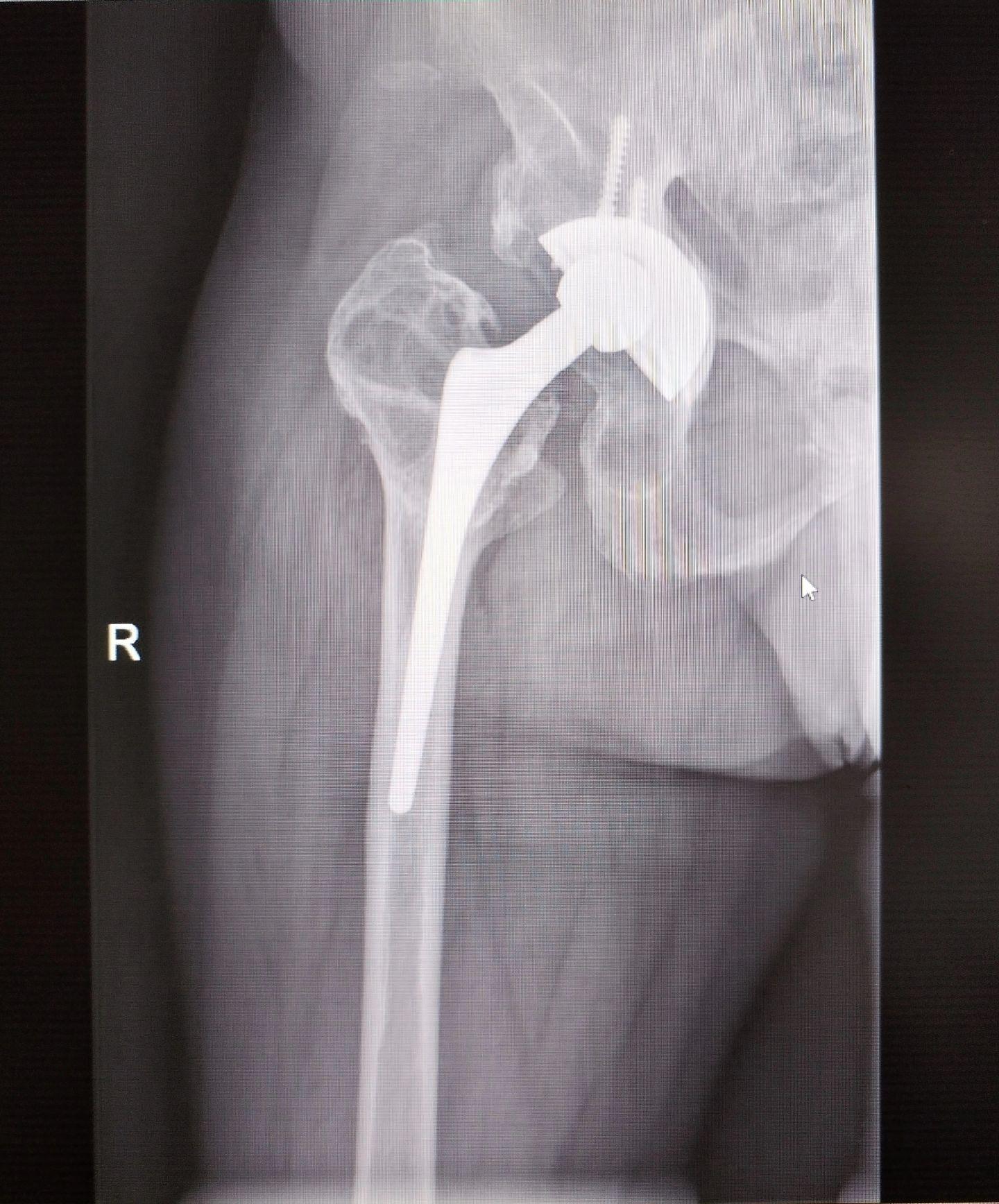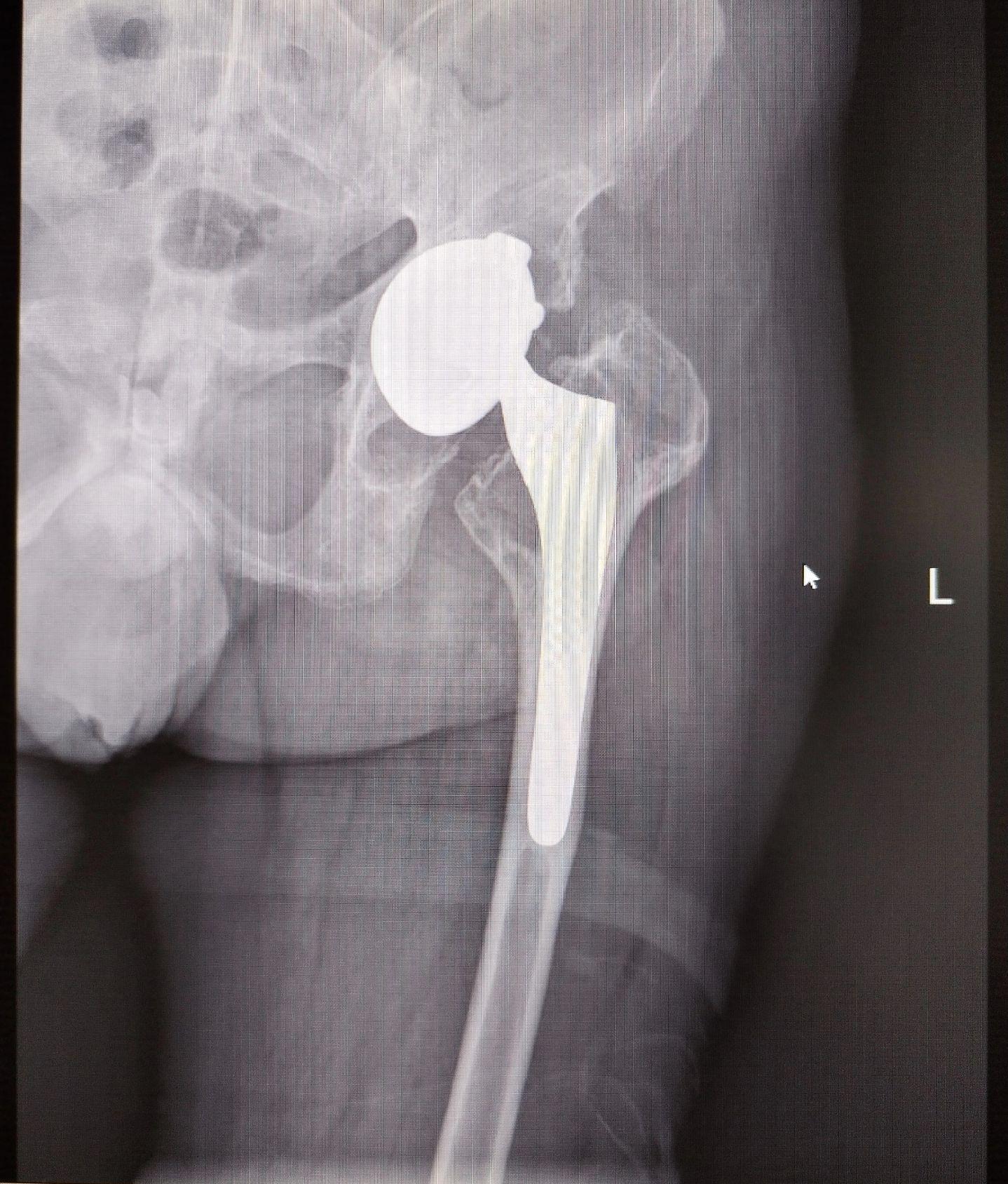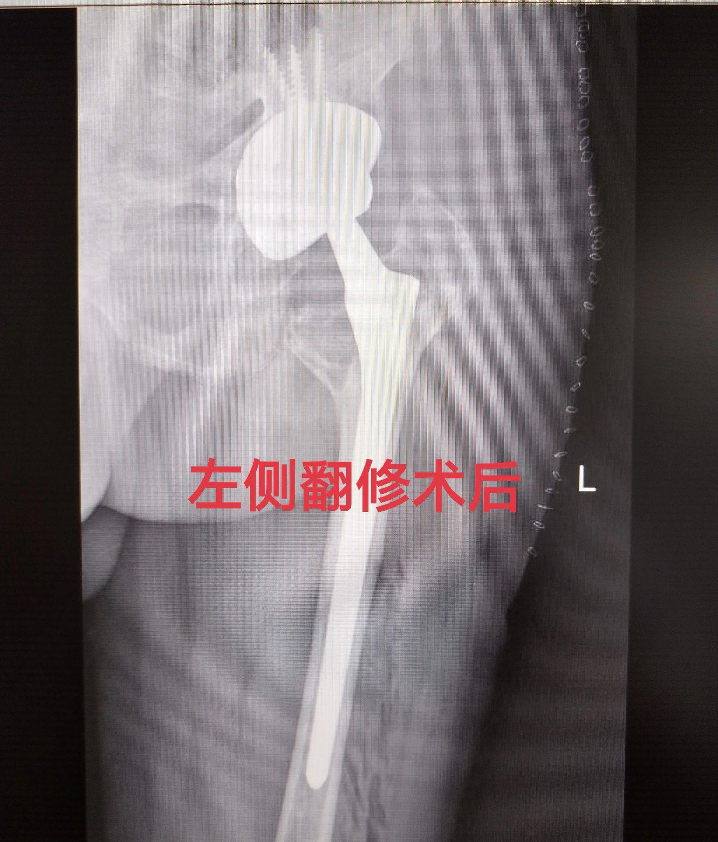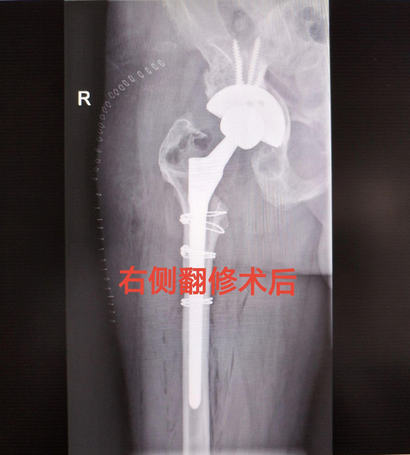 髋关节翻修术。髋关节置换术后假体磨损松动,双侧分次翻修。