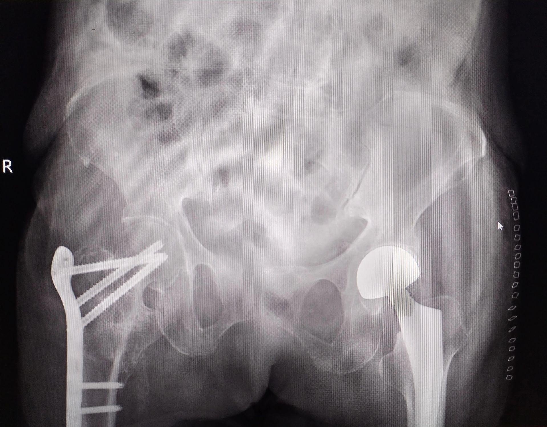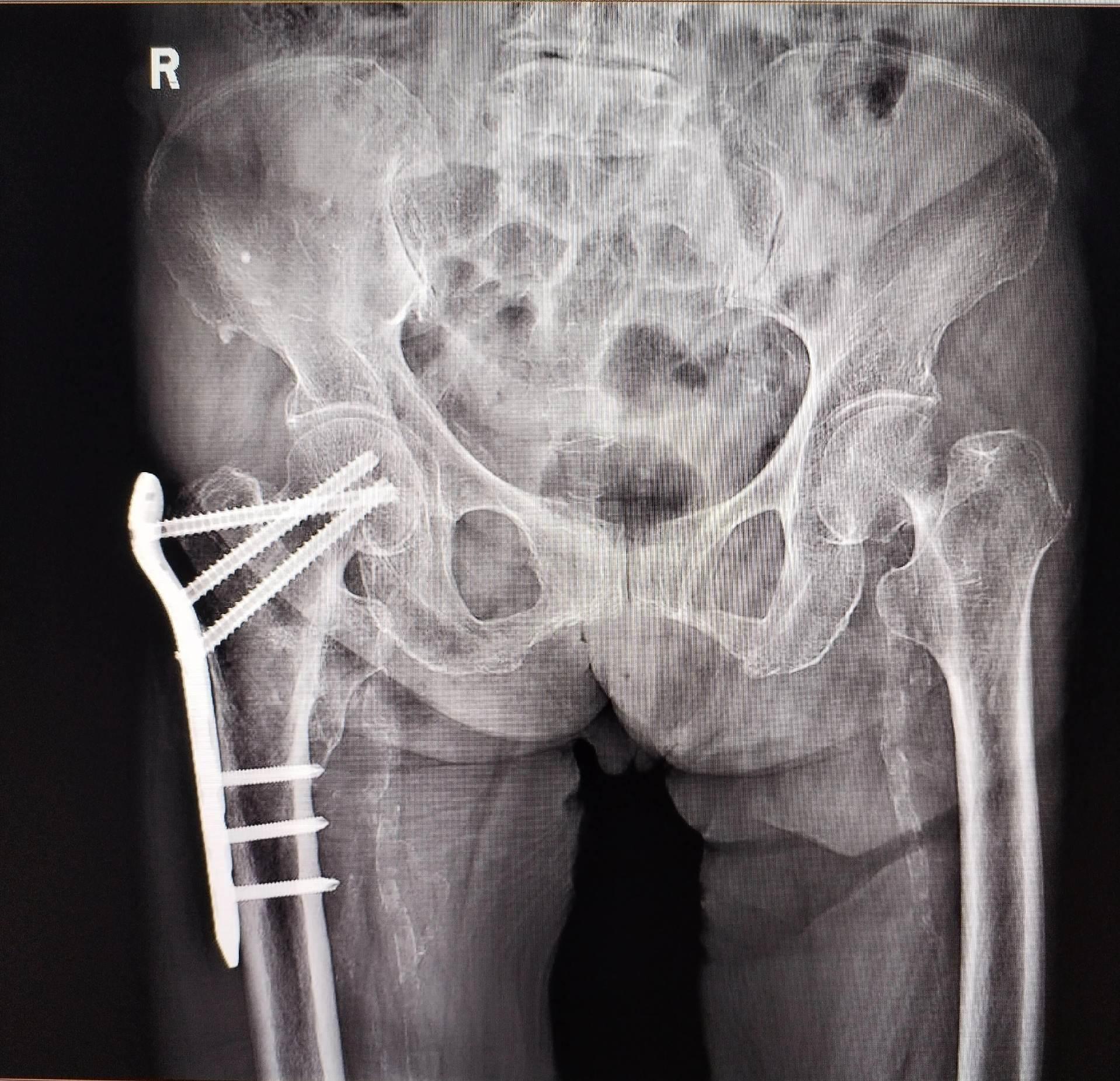 股骨颈骨折。101岁老太太,股骨颈骨折,鬼门关走一遭又回来了。家属的充分理解和支持,相关科室的齐心协力,是手术成功的关键因素🌹