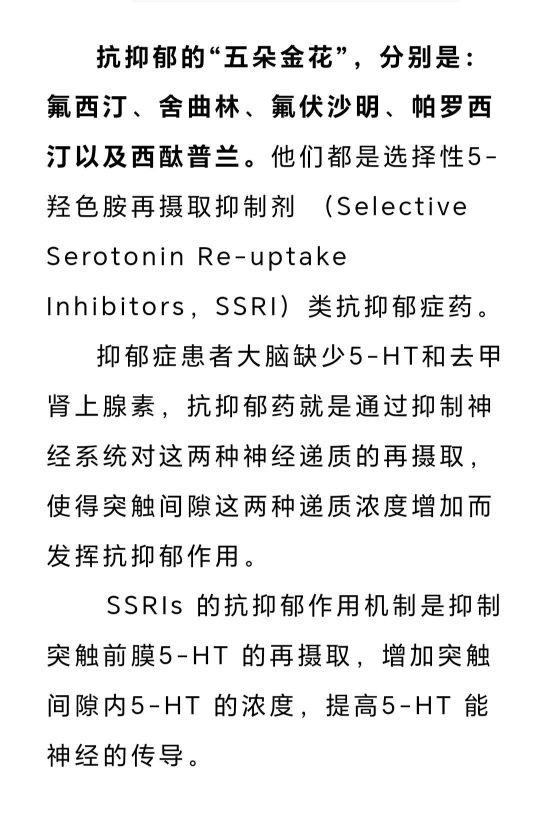 抗抑郁五朵金花。