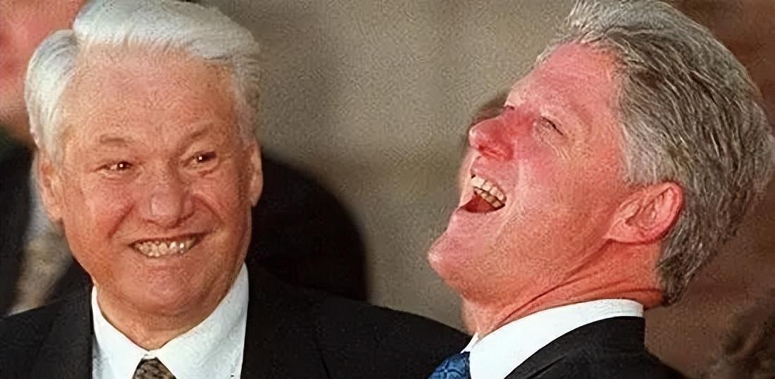 相当经典的照片,叶利钦带领着俄罗斯,彻底被美国忽悠瘸了