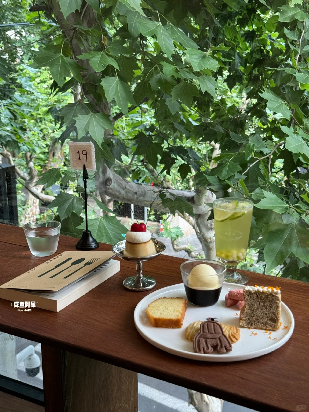 ☕️咖啡店也可以有20分钟效应!!! 满眼绿意真的很夏天☺️ .