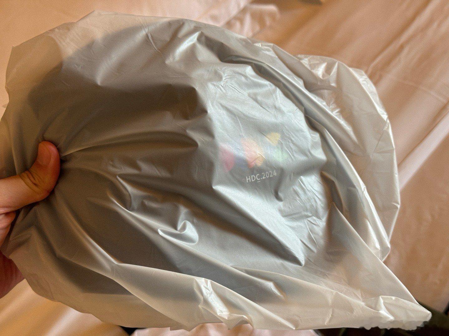 到东莞了,刚签了到,拿到了今年华为开发者大会HDC2024的装备,今年的包挺好看的,包里有文化衫以及HDC2024的帽子,一个精致的徽章,还有一个挂脖风扇,估计这两天会看到很多人脖子上会挂着这个小电扇了[笑cry]