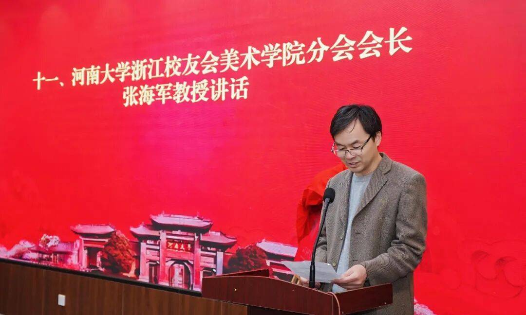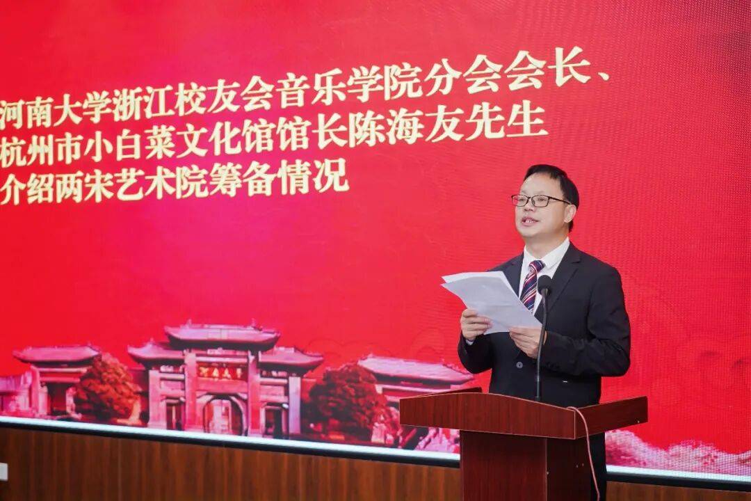 此次大会得到了校地双方的高度重视。河南大学党委副书记杨萌芽,校友总会秘书长肖艳,原艺术学院院长赵振乾,美术学院院长席卫权,副院长王圣松、李龙国、马利霞,音乐学院党委书记王志国,院长王思琦,副书记柴芳等14位院领导组成庞大阵容专程赴杭。大会依据此前筹备会议的共识,正式组建了分会与艺术院的首届理事会。经推举,中国美术学院雕塑与公共艺术学院张海军教授出任河南大学浙江校友会美术学院分会会会长,著名画家、浙江工商大学刘彦勇教授出任两宋艺术院首任院长。张海军在致辞中表示,分会与艺术院将致力于搭建一个“汇聚校友智慧、深研宋韵美学、推动当代创作”的开放式平台,让扎根于中原大地的艺术种子,在江南的文化雨露中绽放新的光彩。