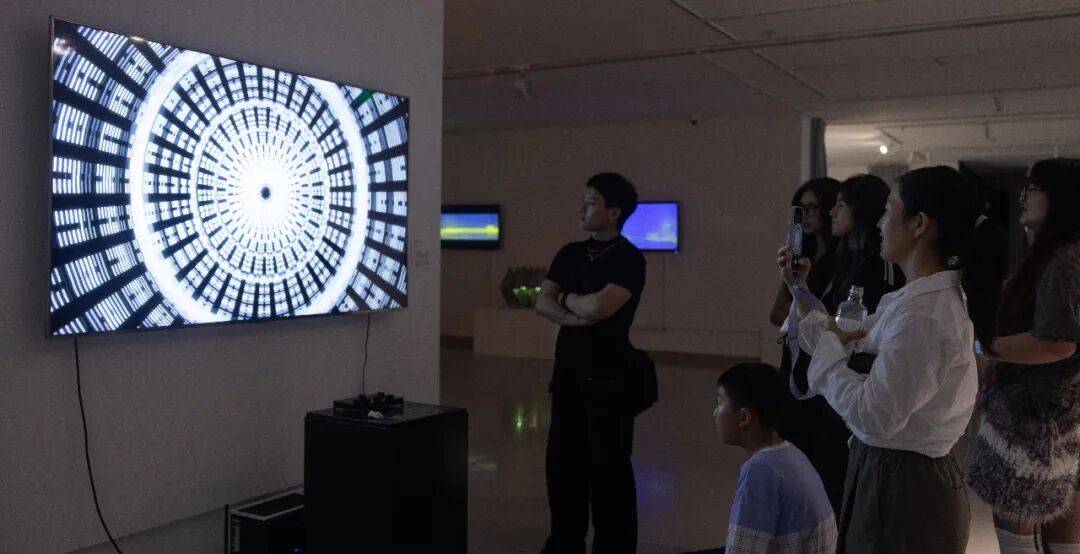 尤为引人注目的是,展览中运用了数字影像、虚拟交互等现代科技手段。例如,青年艺术家张起的装置作品《电路之上》将芯片拓扑化作城市图景:电流路径延展为街道,逻辑节点林立成楼宇。在这座微缩的未来之城里,技术褪去冰冷,化为可穿行的秩序、可触摸的语言;徐利、张起共同创作的互动影像装置《混沌拓扑》:以东方哲学“天人合一”为核心架构,通过构建数字化的互动游戏机制的推演系统,当观众将年月日、季节、时辰等数据输入后,转化为实时运算的视听参数,装置即启动算法生成独特的气候变化图谱——星轨运行轨迹与能量场交相辉映。这种将微观个体时辰映射宏观自然节律的算法艺术,既在视觉艺术中展现着人体生物钟与宇宙的隐秘共振,又以数据可视化揭示出自然生态蕴藏的系统论智慧,最终在数字场域里重构出"人体小宇宙与天地大宇宙同频共鸣"。这些实践生动诠释了“审美转译”的核心概念,即不是对古物的简单模仿,而是以当代之心、今日之技,与之进行深层对话,让沉寂于历史的美学基因在当下获得新的生命形态。