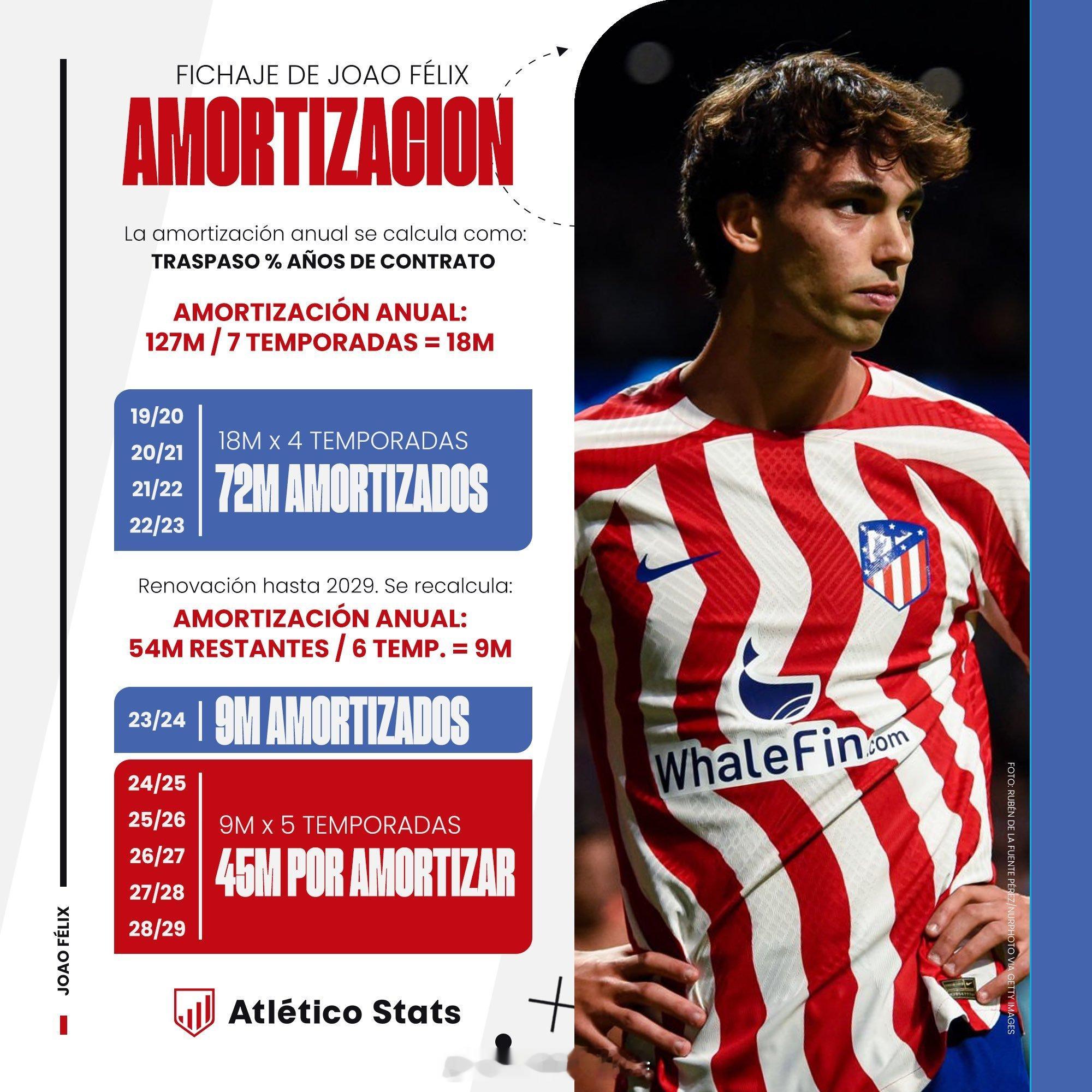 菲利克斯几个赛季以来的数据,每个赛季传射基本在十五六个。根据atleticostats的这种简单分析,马竞还得卖4500万欧才能摊销成本。