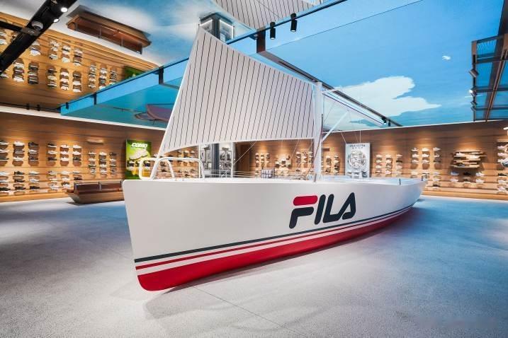 在这里,环球独航的宏大叙事、海上丝路的历史及FILA百年探索的品牌精神融为一体。而一搜来自1999年FILA赞助意大利帆船家吉奥瓦尼·索尔迪尼(Giovanni Soldini)驾驶,且复刻“FILA TRI号”的帆船装置即陈列于此,他曾独自航行大西洋116天,创下世界纪录。