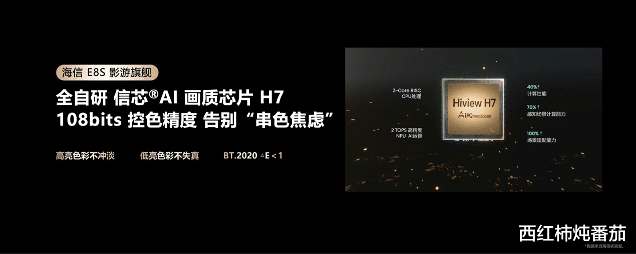 控光精度上,海信E8S搭载全球首款基于RISC-V开放架构的信芯AI画质芯片H7,首创三维光色同控技术,毫秒级同步调控三原色光的强度与配比,支持3x10240级精准分区控制,1个彩色分区的控制精度超越传统3个控光分区;最高配备9360个控光控色分区,配合108bits控色精度,色准ΔE<1,达到专业显示器级别,满足影视创作、高端游戏等严苛场景需求。