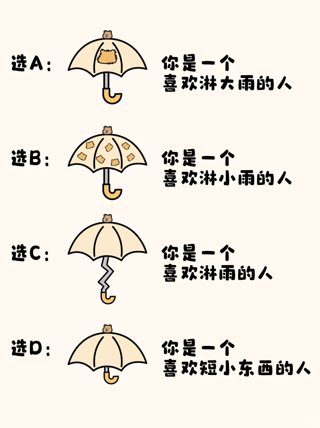 所以为什么伞柄弯曲就会淋到雨儿