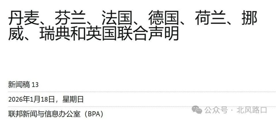 丹麦、芬兰、法国、德国、荷兰、挪威、瑞典和英国发表联合声明,强调“格陵兰的地位不容更改”,并强调“任何讨论都必须在尊重主权和领土完整的前提下进行。”