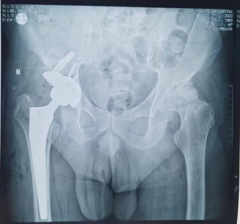 DDH髋关节置换。DDH高脱,术前短4cm,术后下肢等长,二期行对侧置...