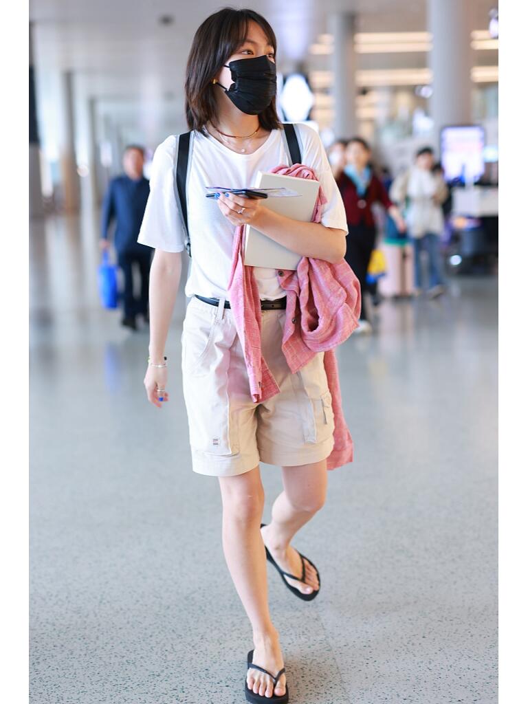 小姑娘穿了一件白色的T恤,搭配一条米色的工装风短裤。脚上是双黑色的夹脚凉鞋。简单休闲又舒适自在。她这套适合的人群很广泛,小姑娘们可以穿,成熟女人也可以穿。很适合逛街度假居家穿。