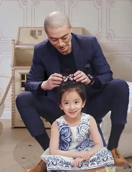 霍建华给小女孩扎马尾,这熟练程度看得出华哥在家没少给小海豚扎头发吧!
