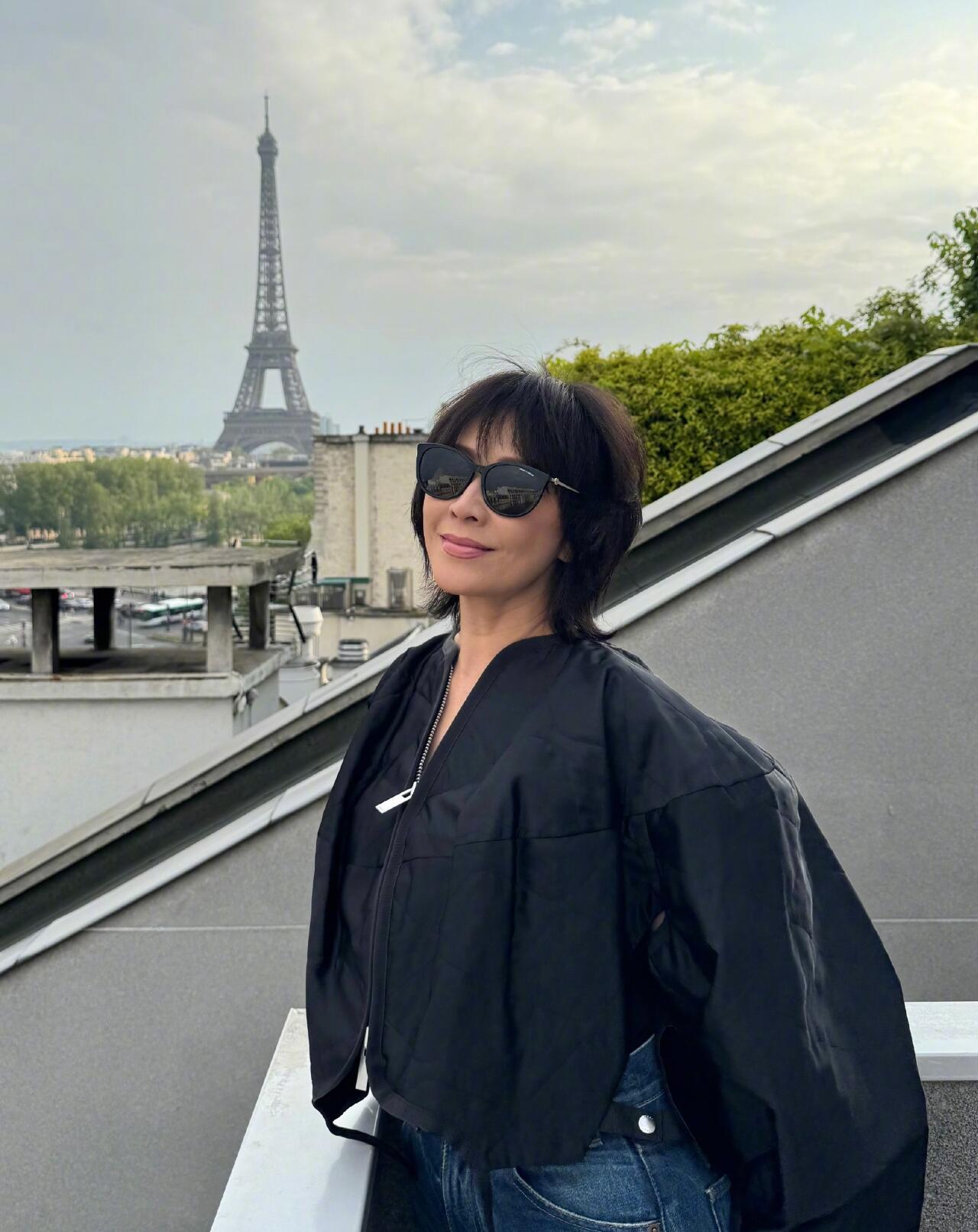 刘嘉玲这齐刘海的短发不错,蓬松又显年轻,而且很利落。穿一件黑色的宽松短款小外套,搭配深蓝色的牛仔阔腿裤,脚踩黑色皮鞋,简单休闲又舒适,而且很有活力。