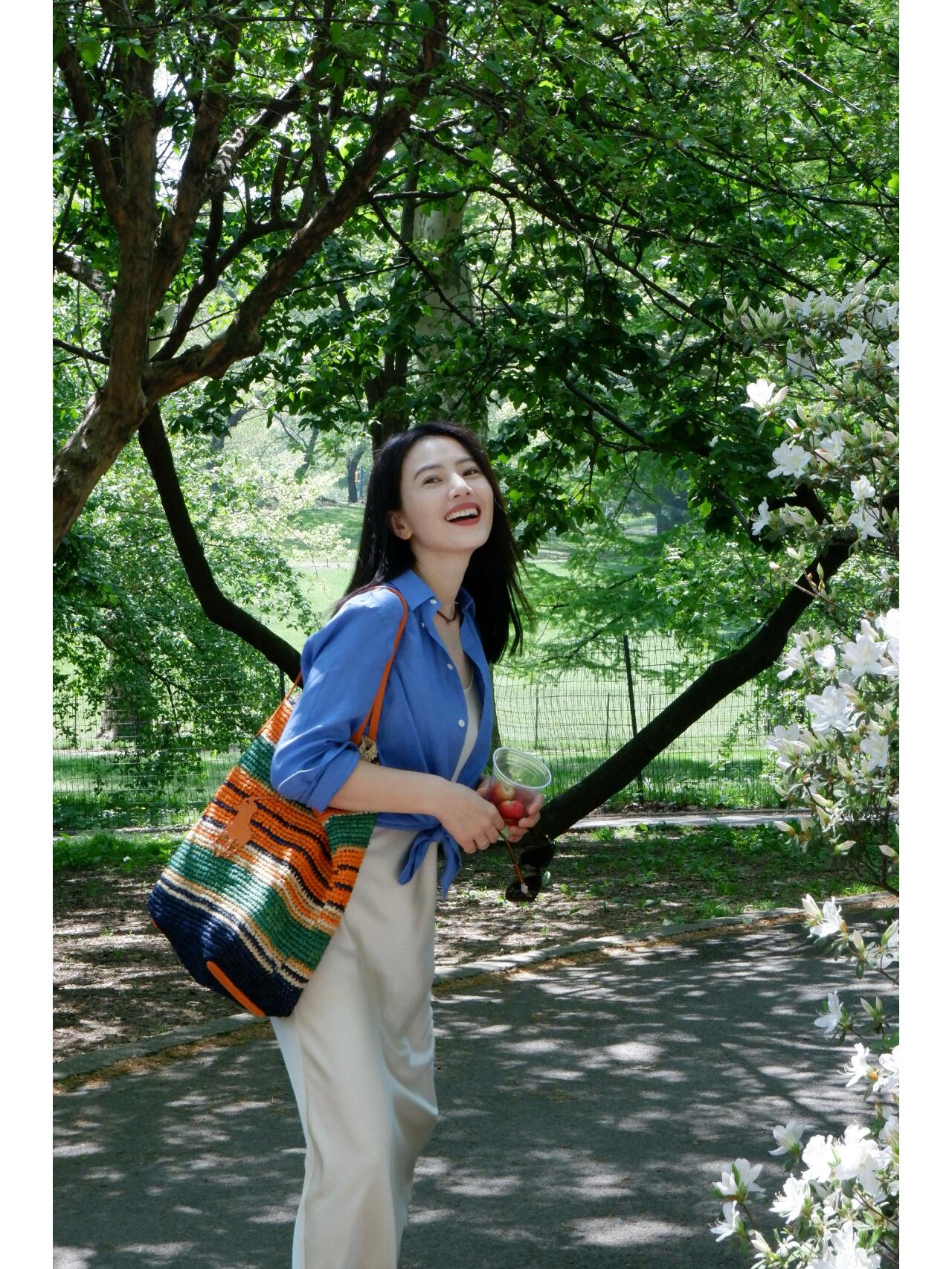 牛仔衬衫配白裙,清新到犯规,圆圆姐这是教科书级穿搭啊!学起来~