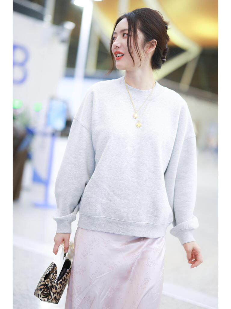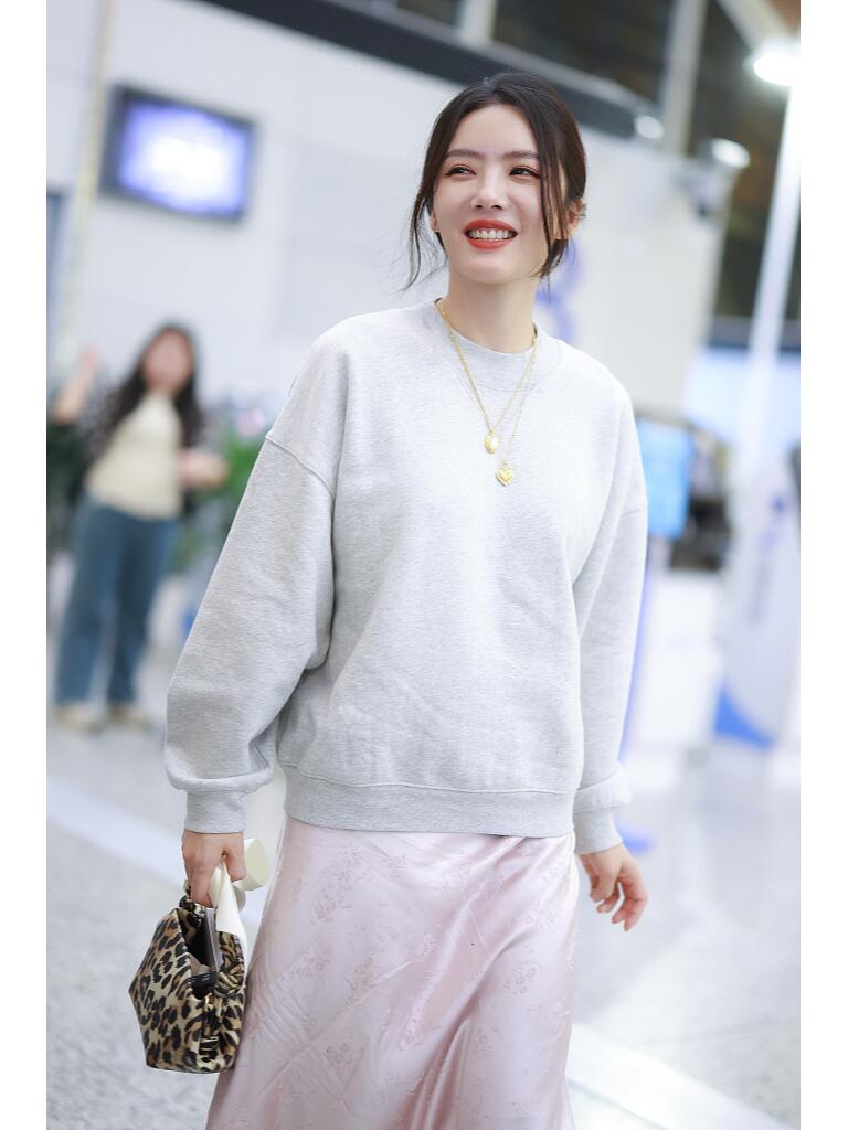 这搭配绝了!浅灰卫衣加粉裙,甜美不失酷劲,蔡文静真是行走的穿搭教科书,学起来!✨