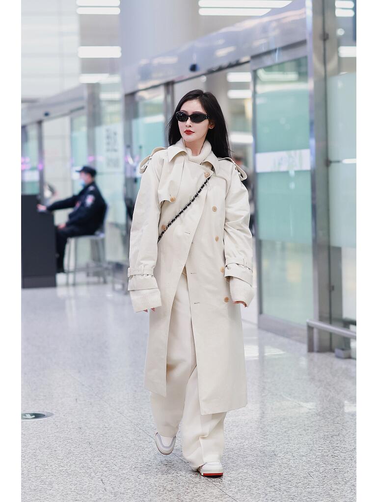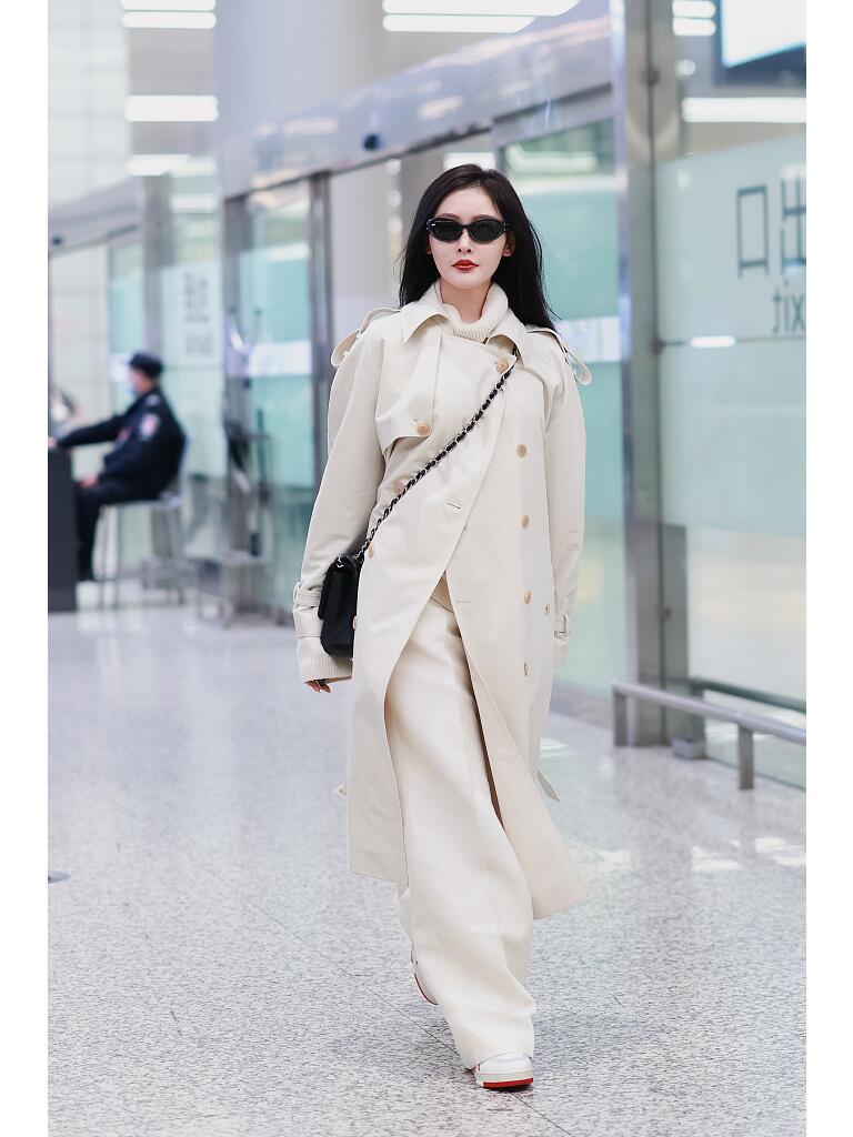 她穿了一身白色,清爽贵气,还蛮有气场的.一身白色不管什么时候都很吸睛。