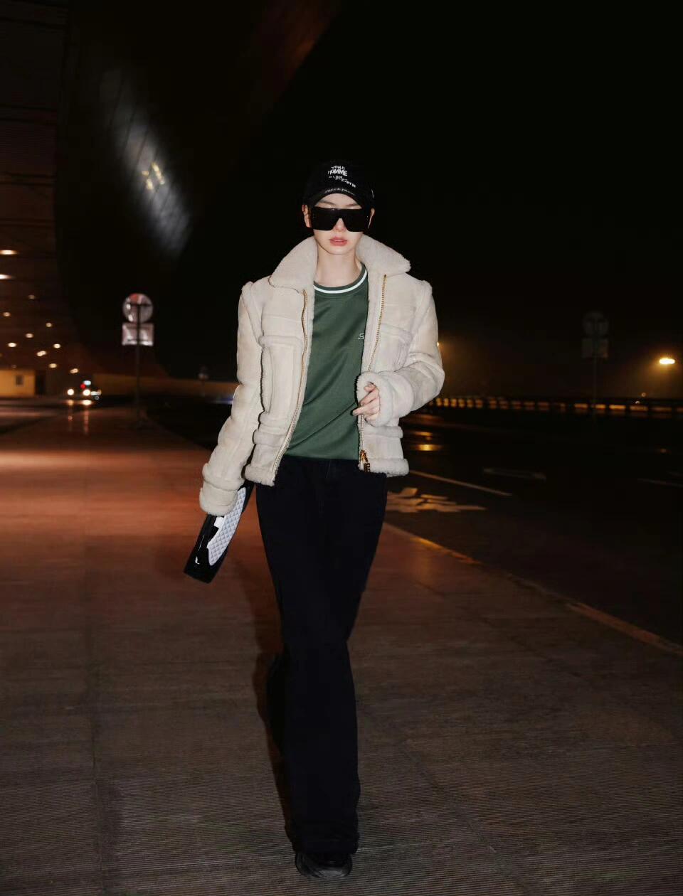 戚薇穿白色外套很酷