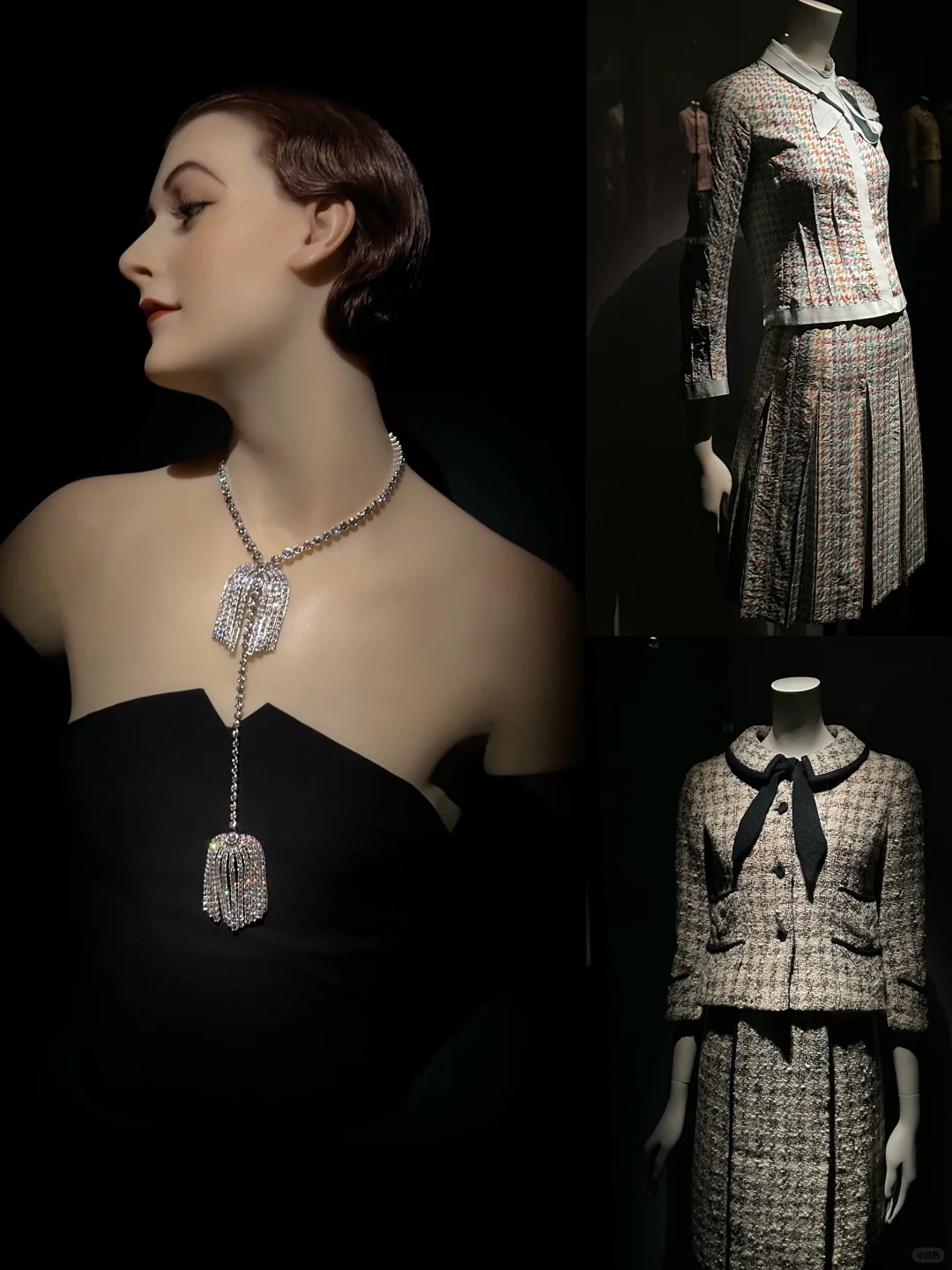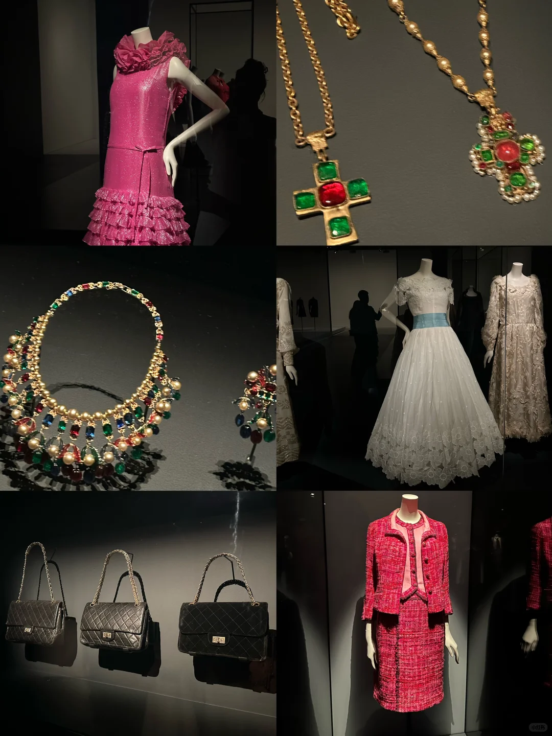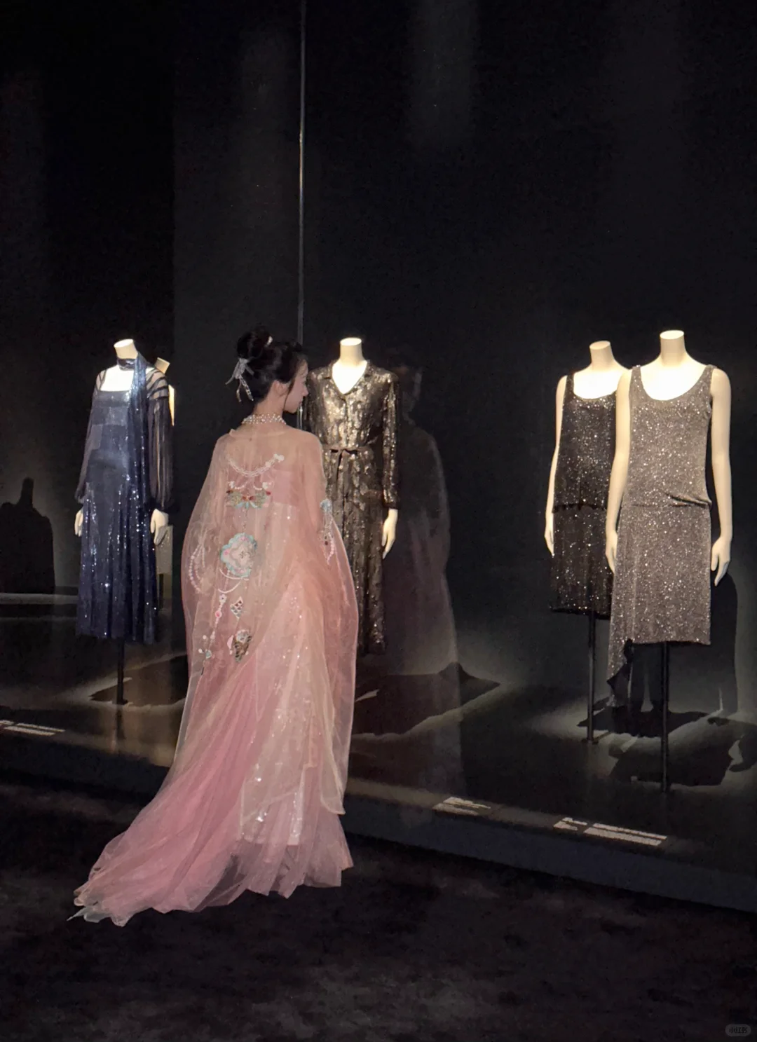 有幸近距离欣赏到被珍藏百年的Gabrielle Chanel女士的经典创作,那些风格永存的作品,经岁月沉淀仍然熠熠生辉。 这次看展穿搭选择了国风汉元素的混搭,珍珠纹样刺绣大袖衫,搭配剪裁干净利落的珠片绣花诃子裙,以致敬香奈儿女士创造的“鸡尾酒裙”系列,解放女性身体,打造舒适简约的优雅风格。 展览中也很惊喜看到香奈儿女士对中国文化的运用,包括来自中国的丝绸、以及一些交领系带设计的连衣裙等。 Tips:展览内容很丰富,去打算看展的宝们,建议预留出一个半小时的时间~