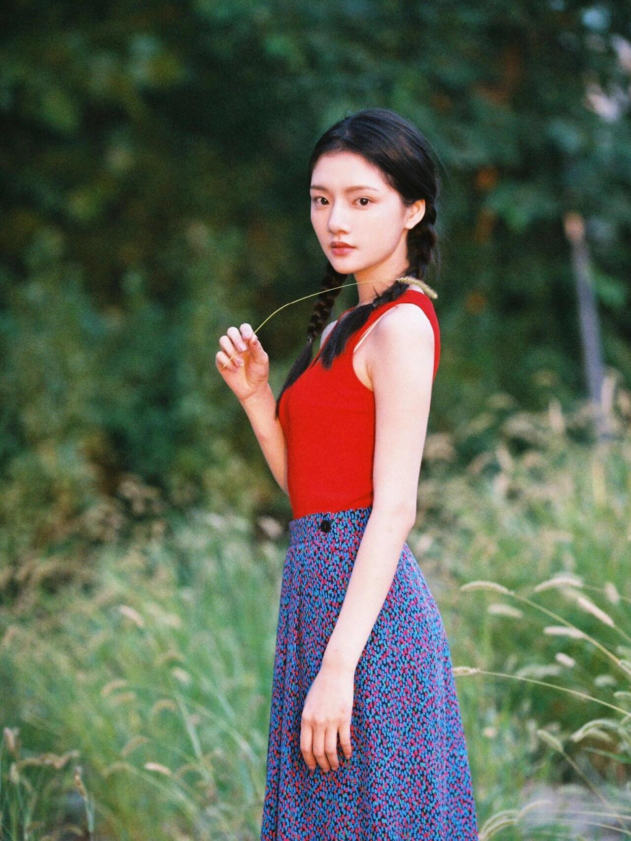 不是!任敏这组怎么能这么美! 这组走文艺风的任敏 真的美得很有辨识度 红色无袖小衫 搭配小碎花长裙 再编个清纯麻花辫 暖熙的阳光照在身上 很有电影阳光灿烂的日子的感觉 好鲜活的女孩 真美好