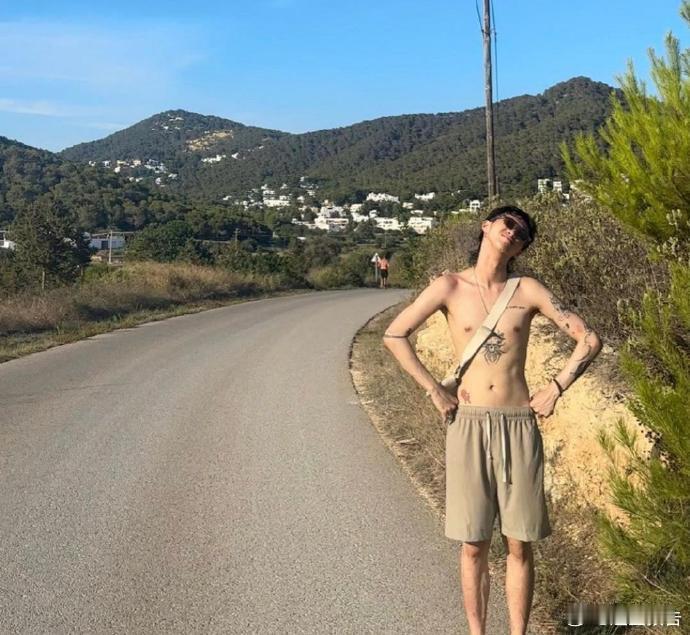 伊能静21岁儿子哈利去西班牙旅游,这次他没有穿女装,而是光着膀子