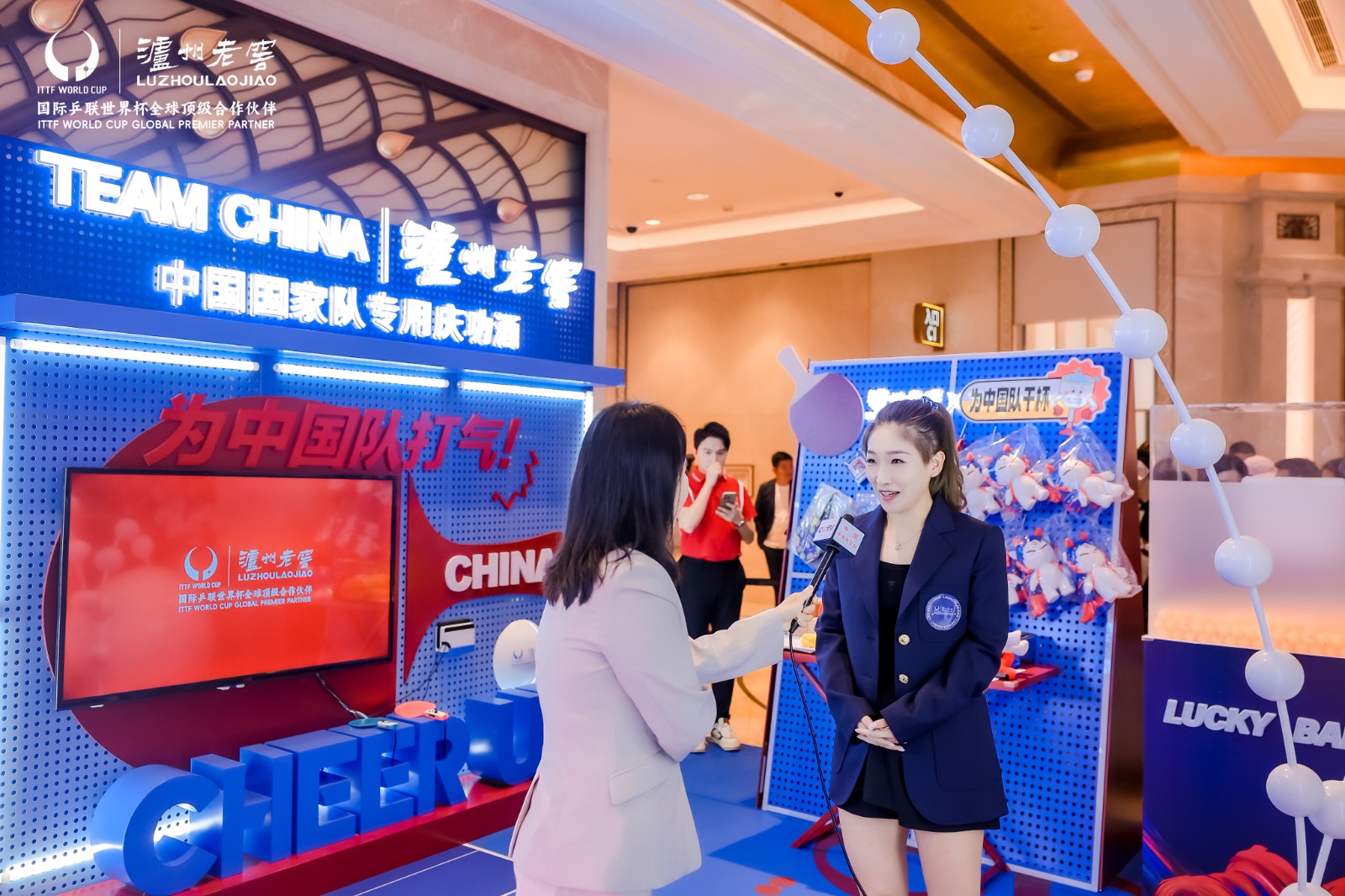 刘诗雯是国际乒联世界杯五冠王,泸州老窖是唯一蝉联五届“中国名酒”的浓香型白酒,双方的“梦幻联动”也引发了现场观众和球迷的点赞,“乒乓球运动的激情与泸州老窖的浓香底蕴碰撞,这就是‘为中国荣耀干杯’的正确打开方式!”刘诗雯表示,“泸州老窖作为具有深厚历史底蕴的品牌也做了非常多跨界创新的尝试,我觉得这对品牌、对乒乓球运动都是特别棒的事情。”