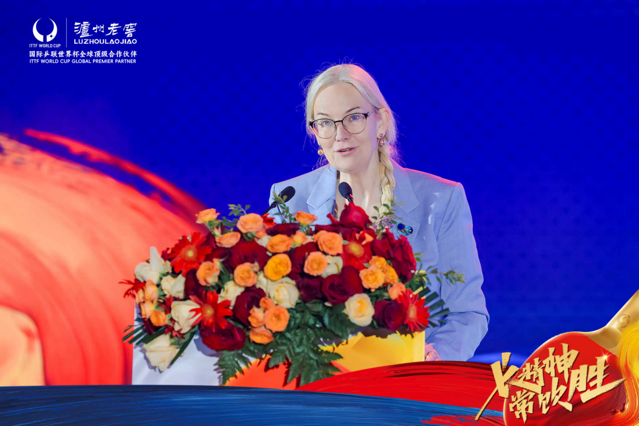 启幕仪式上,国际乒联主席、国际奥委会委员佩特拉·索林在致辞中表示,“本次赛事将乒乓球推向前所未有的水平,也为我们的体育创新设定一个开创性的标准,国际乒联与泸州老窖的合作有望将这项赛事提升至新的高度。除此之外,我们也很高兴看到泸州老窖在与国际乒联世界杯合作的基础上,在2024年创立了泸州老窖乒乓球城市挑战赛并在今年继续发展,为更多乒乓球爱好者提供交流互动的平台,为乒乓球运动的长足发展贡献了力量。”